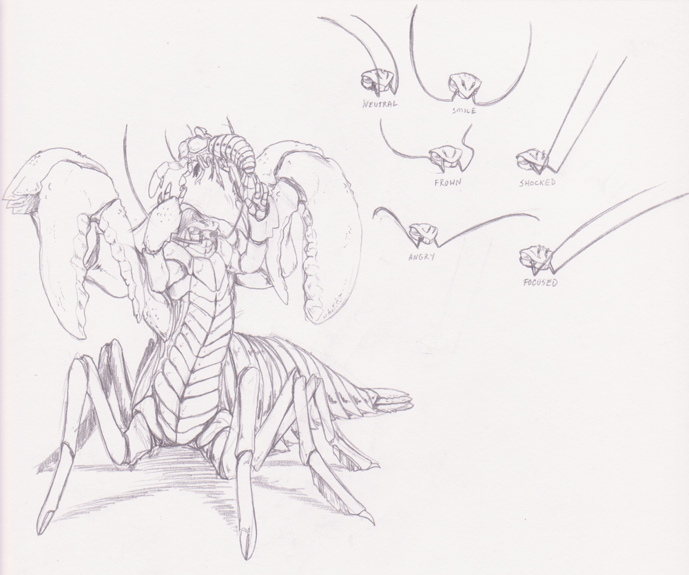 Kren facial expressions are primarily expressed through the antennae and small eyes.