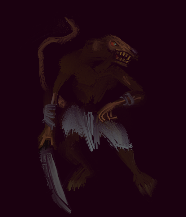 Tried out a brush style more. Source image: http://2.bp.blogspot.com/-wvgVPbpNN7o/TrFSZS293TI/AAAAAAAAAEA/or21sKIzXb0/s1600/skavenslave.jpg