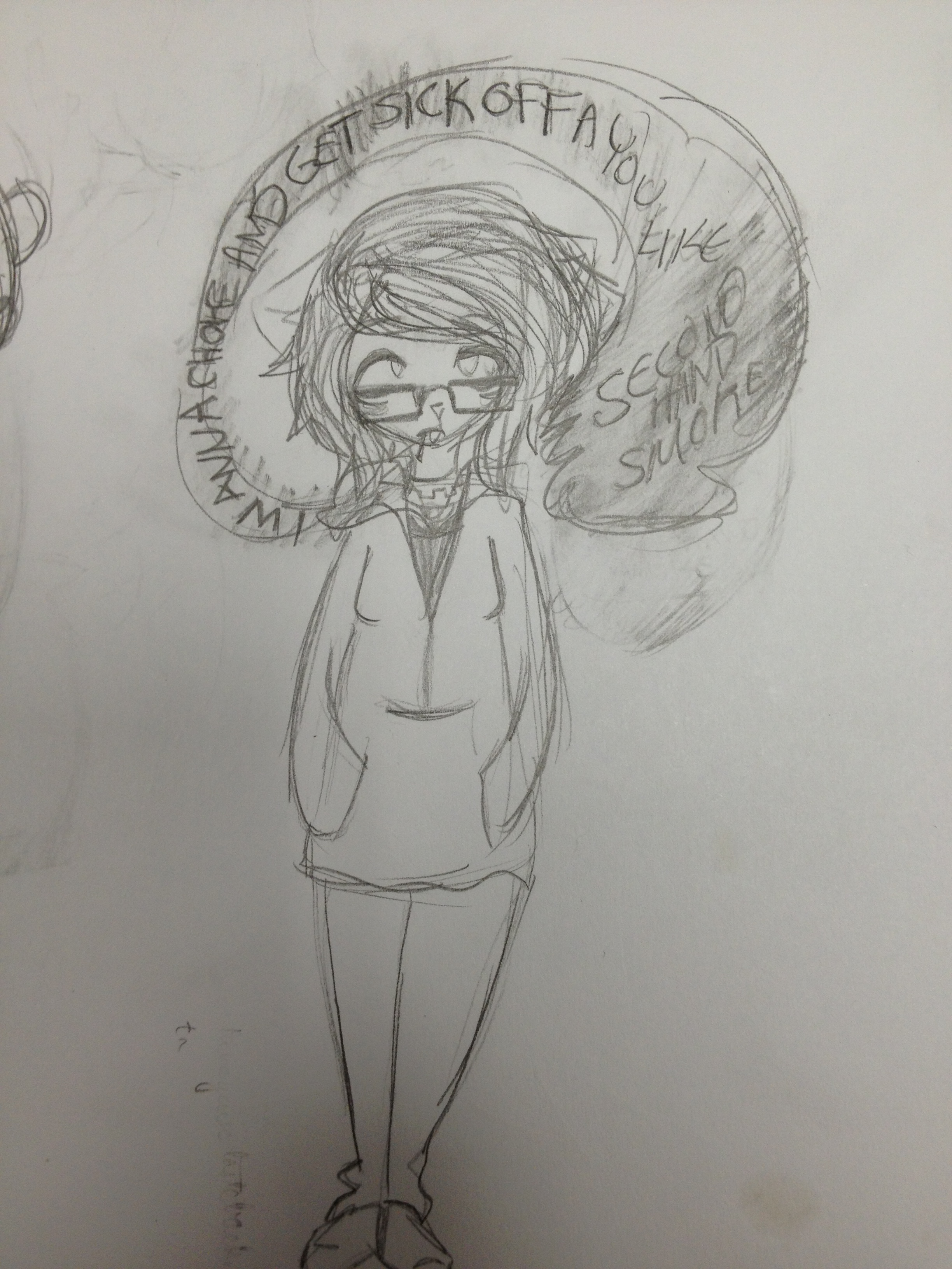 all those good people down on jubilee street, they'd better practice what they preach light is shit cos i had to take the picture under the table but this is the first thing i've done in a while that actually consumed an entire page??? i like it kind i'll color it when i get home headless sona /o0o/