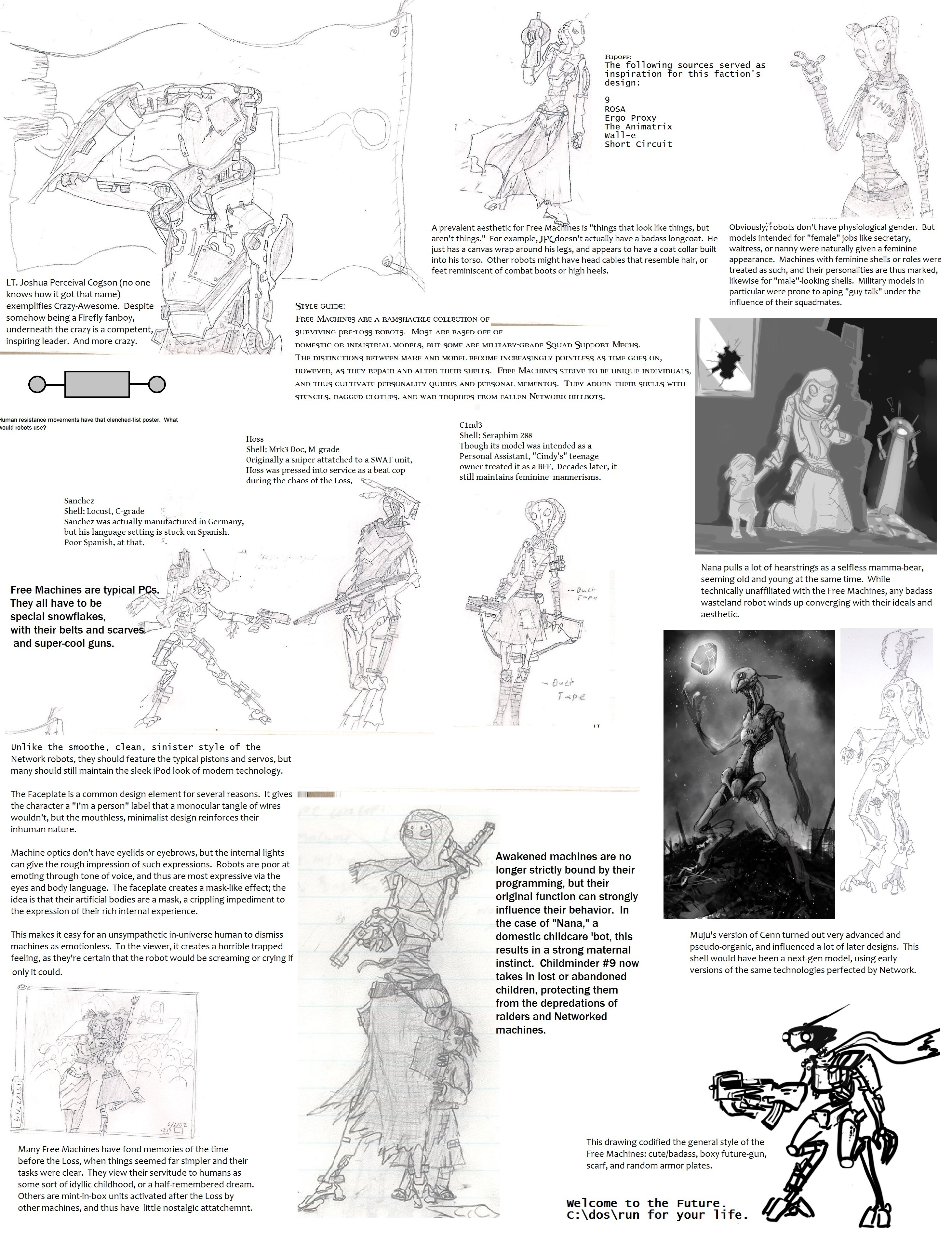 Here's the styleguide for the totally-not-skynet enemy faction, which I worry is too much like the Geth, but I tried to differentiate them.
