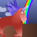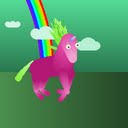 Someone flying in a dress of rainbows!