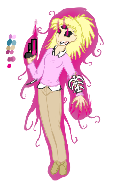 Her main weapon, her pistol, is now inset with a channeling stone, thus allowing her to fire telekinetic bullets, or if it's able to strike bare skin, mutate her opponents to immobilize them. If anyone has any further questions about the design decisions here, feel free to ask.