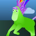 Southern sergal, in dull clothing with bright ribbons flapping off various points.