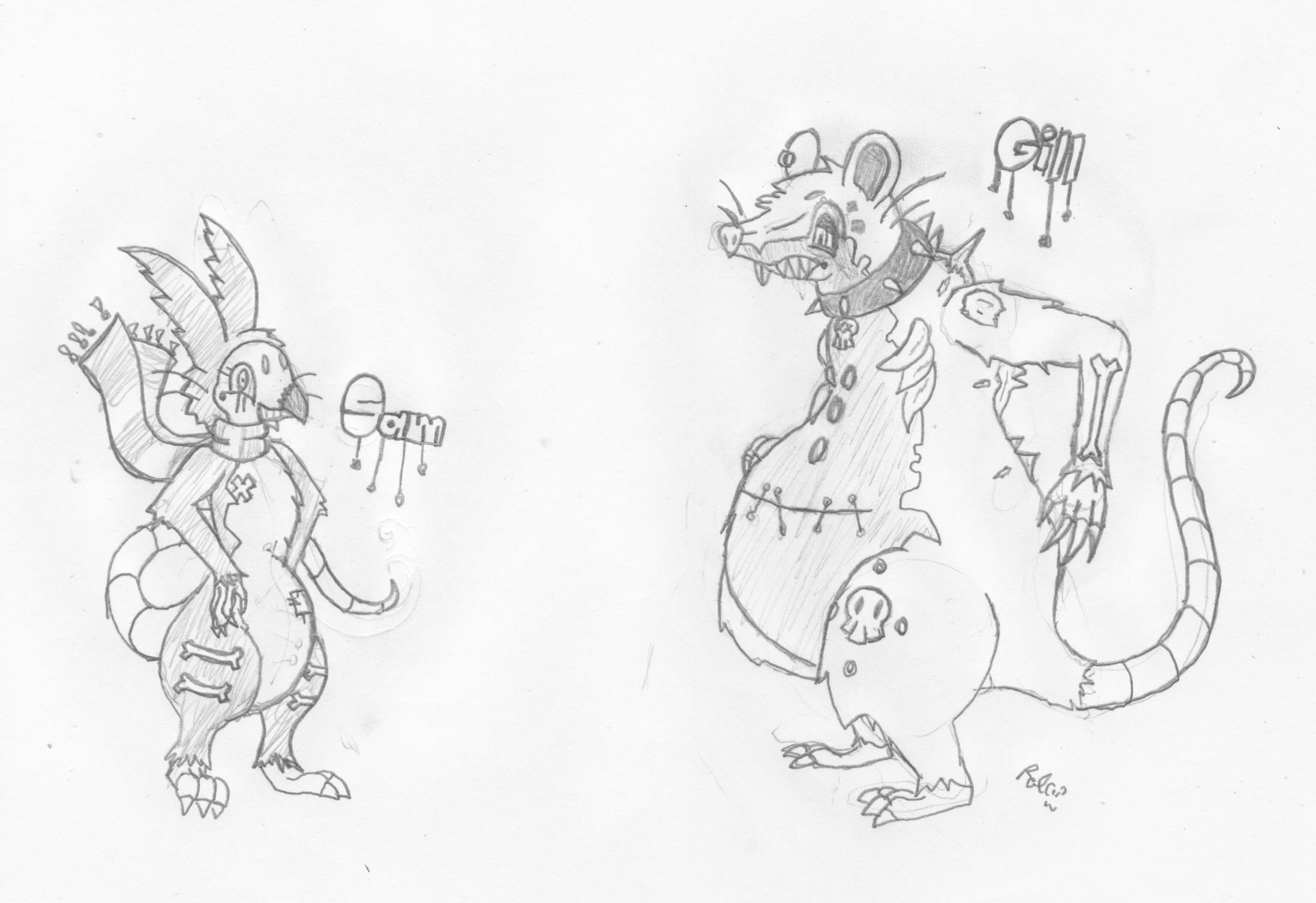 More Floraverse stuff, Gill the Necropossum and their unpleasant partner Sam the Hanged Man.