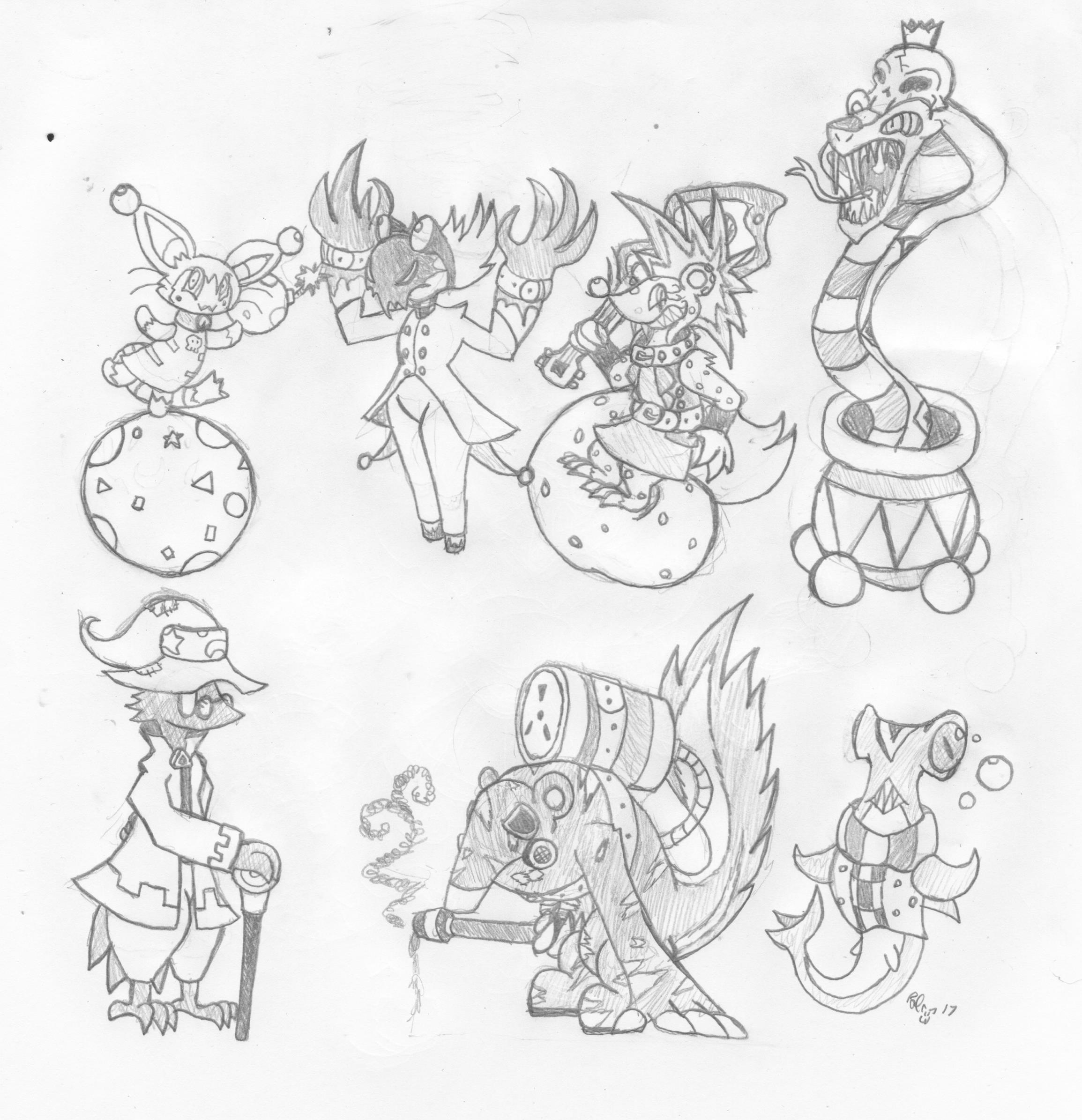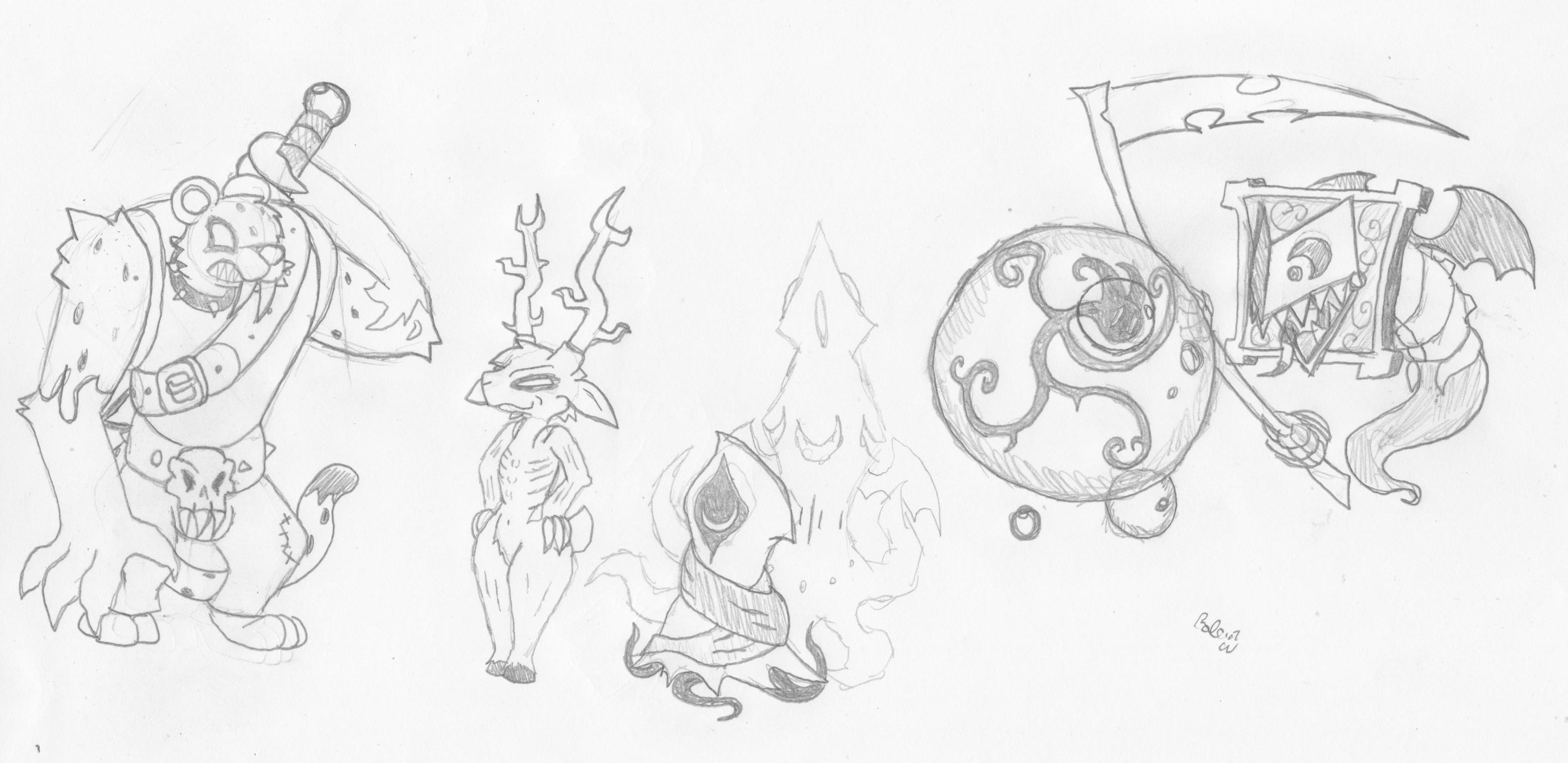 Redraw of the Seven Evil Critters. Tried to give them slightly more dynamic poses.