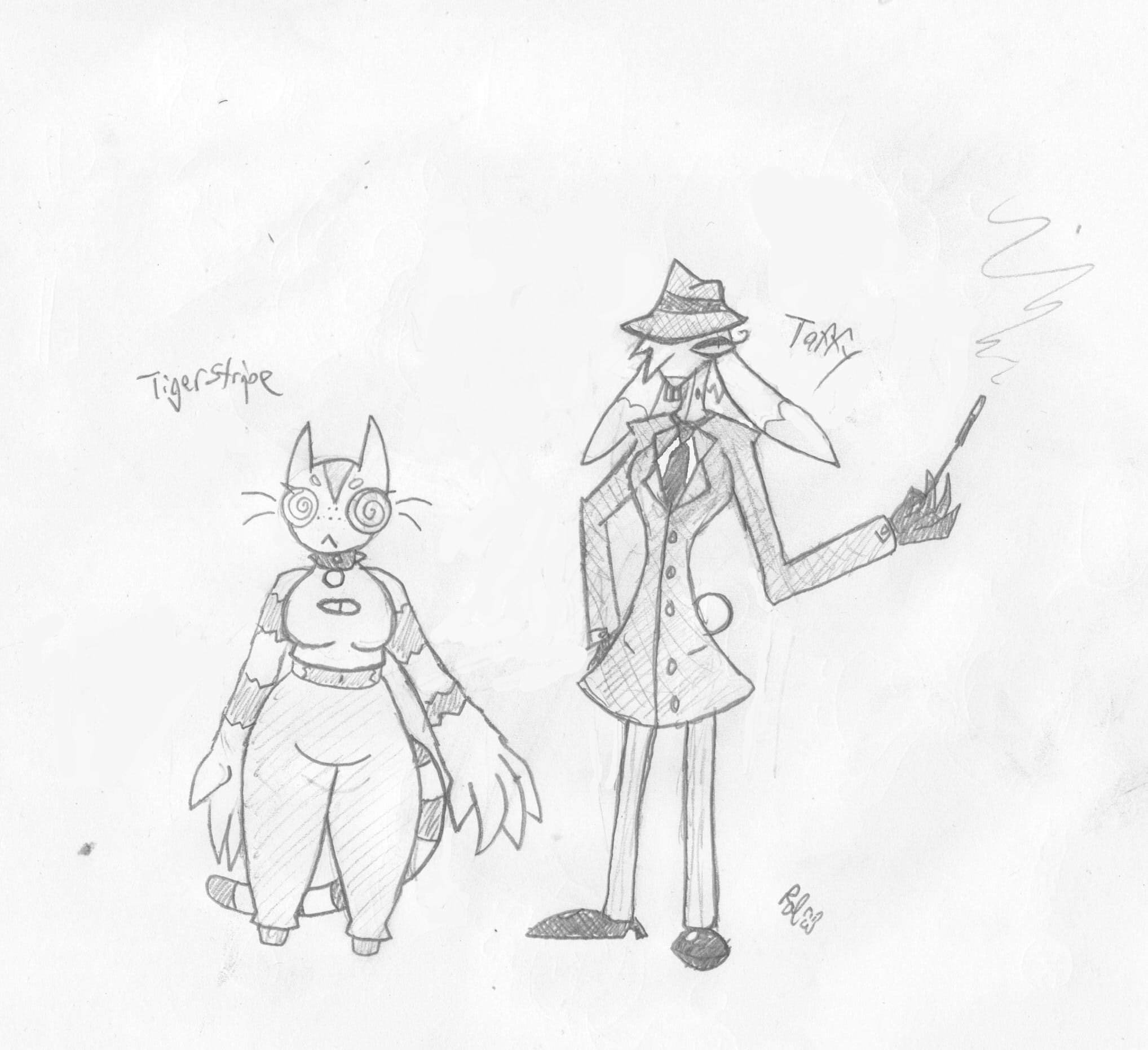 Older art of Candy Lesbians Taffy the Rabbit and Tiger Stripe the Cat. They fight crime and stuff in a magical Candy World.
