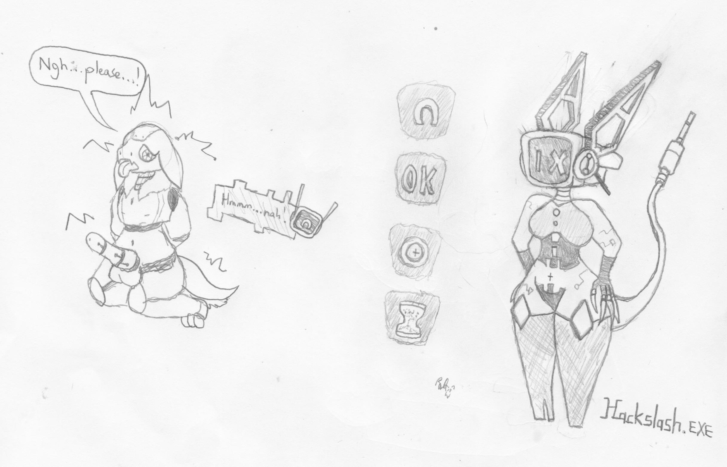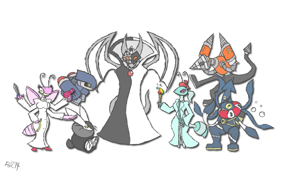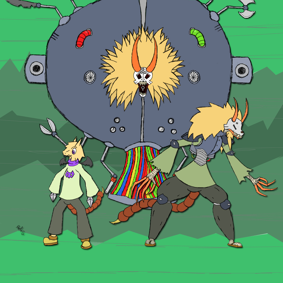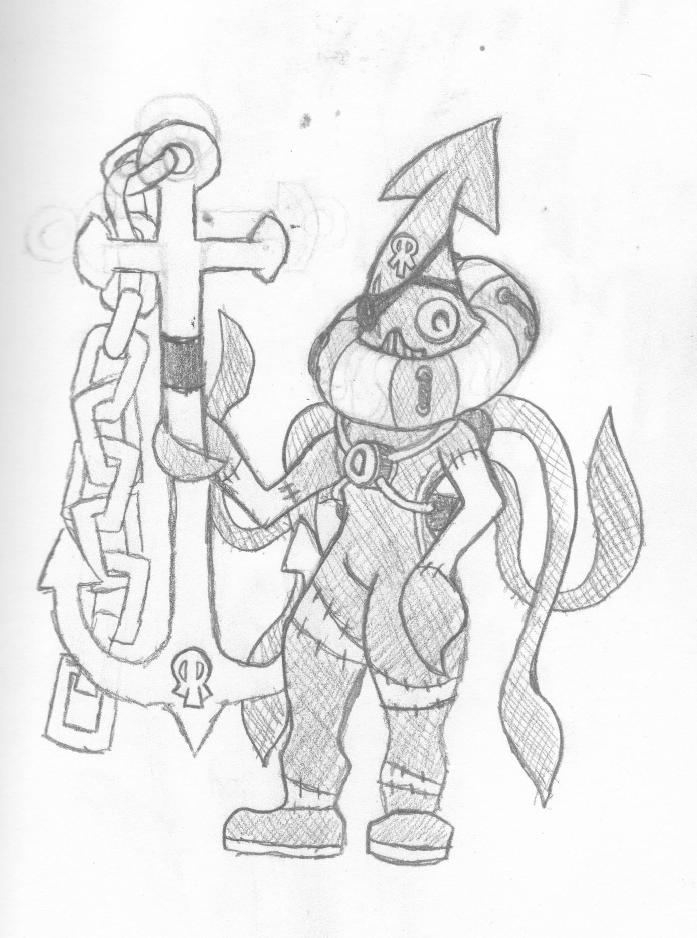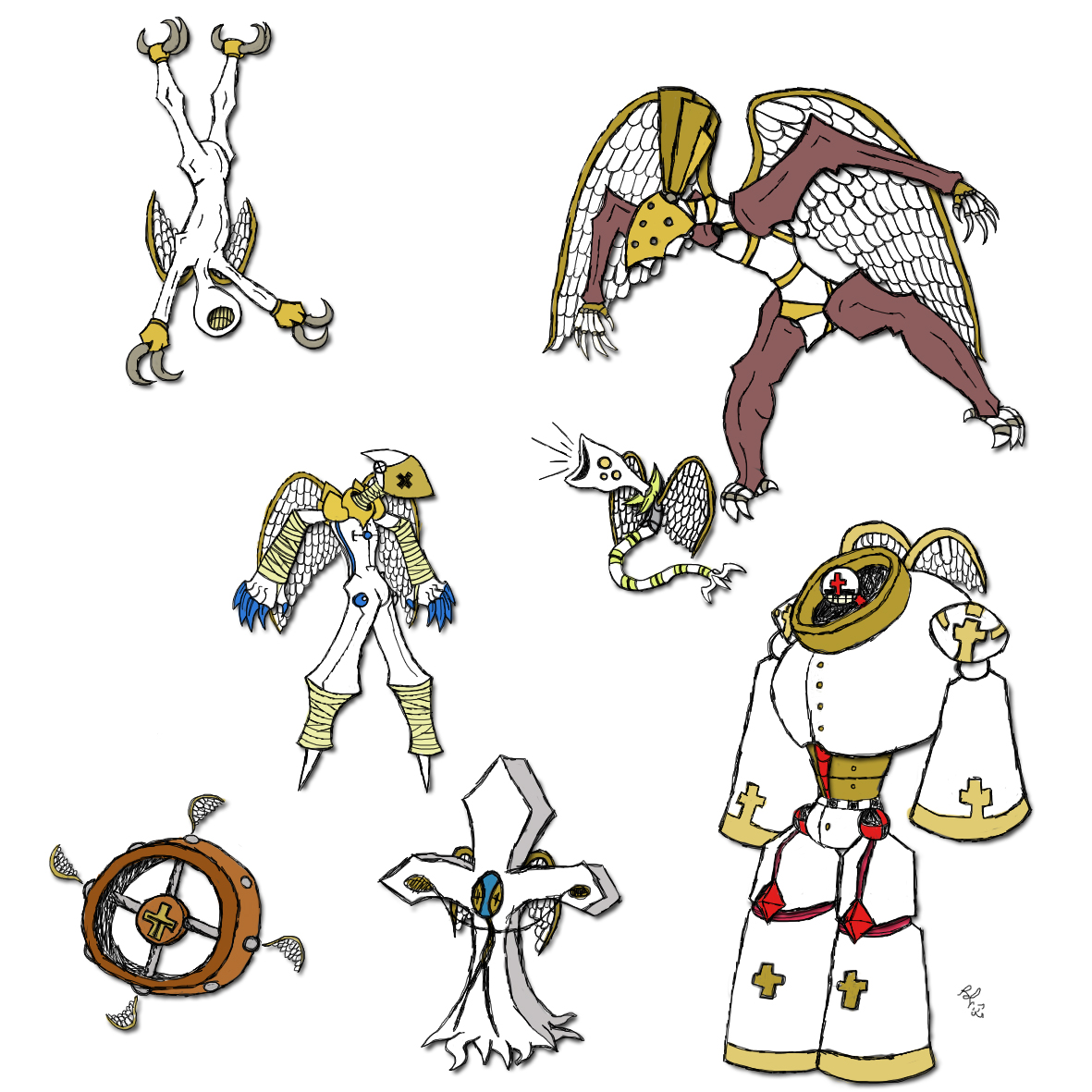 Hostile Junk Golem (Female): Considered far more sadistic and dangerous than even the males, the females of the Hostile Junk Golems have the same ability to build new Golems like their tame counterparts, but are also much more aggressive and prone to extreme violence. They specialize in climbing onto ceilings and surprising enemies, the same electric charge that powers the males used as a way to stun the enemy and leave them open to be torn apart by the bladelike claws. Because their hands are usually full of gore or flesh from battle, these golems weld their keys to their tails rather than carry them.