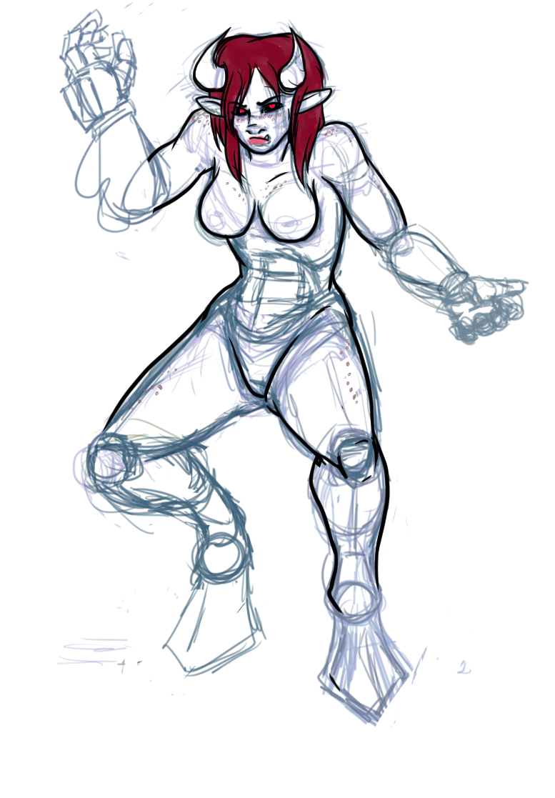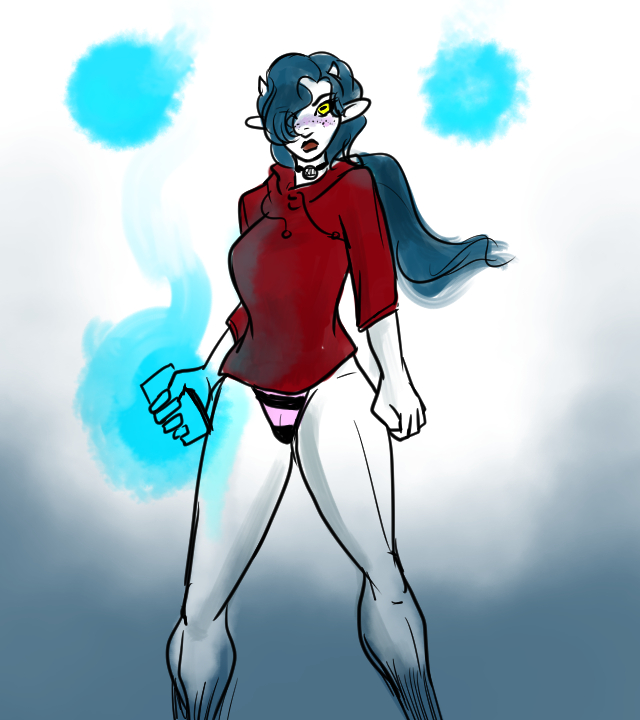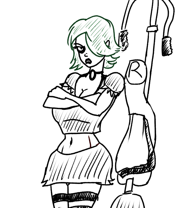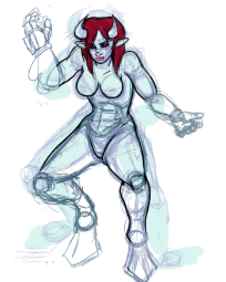 Kitty McMillion, who was a ninja lawyer who realized that she was a mook and that her only chance of not being killed off like everyone else in her clan was to go hero. She could shoot lighting, but it took some ninja-magic gestures first. I stole her look from the red ninja android in "Ninja Warriors" I chose ninja-lawyer because I thought it'd be far scarier than a regular ninja. Kitty's clan turned on her.
