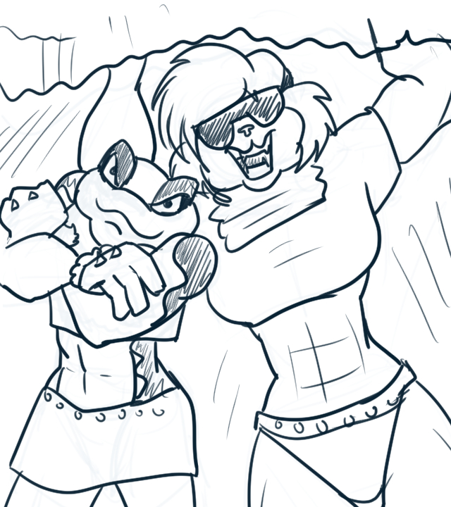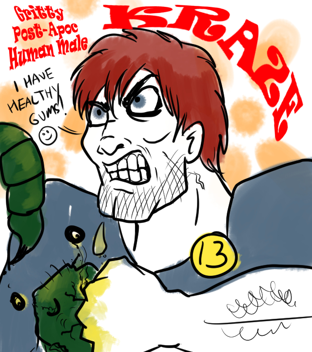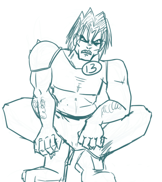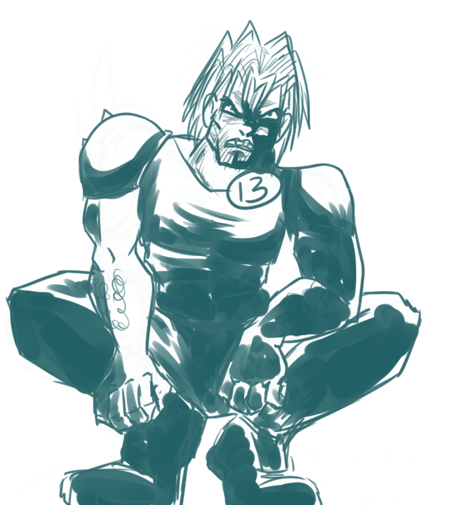 Spike Von Skratchenpost, who was an 80's brawler with piledrivers and an explosive-based super-punch that took a lot of wind-up (I thought in terms of Streetfighter 2 moves). Very, very 80's. I combined Rambo with Double Dragon. Spike had issues 'cause he had a dog's name.