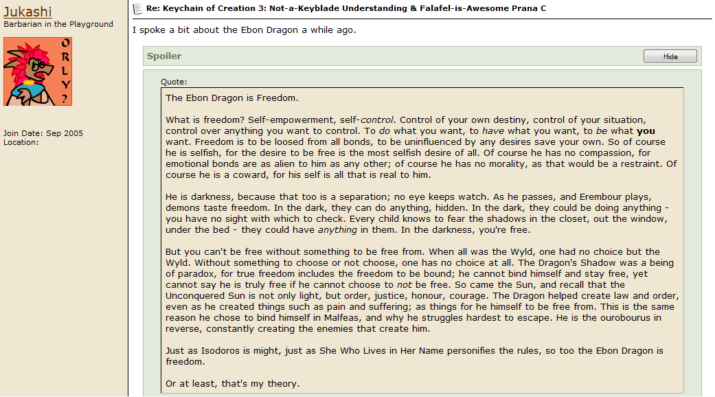 Most of the quest, if I ever actually did it instead of just daydreaming, would be set in hell. Which, in this setting, is a sort of cosmic landfill out in the darkness between the mortal realms, where the Creator dumped all the pieces of worlds They ended up not liking while They were making them. Later, when the souls of mortals started being sorted on their deaths, the best were brought into the heavens, the inoffensive were sent back to reincarnate, and the worst were cast out and ended up in the same interdimensional reject zone as leftover world-trash. Their filthy souls collected in the lowest pits, writhing half-conscious in the corrosive stew of their sinful selves, falling apart and melting together in turns until the strongest lingering fragments of minds pulled themselves together by sheer force of will and dragged themselves from the spiritual slurry as demons, vast armies of whom now wage war to destroy the heavens who cast them out or, failing that, to spite them by taking and corrupting mortals and their worlds into their own image.