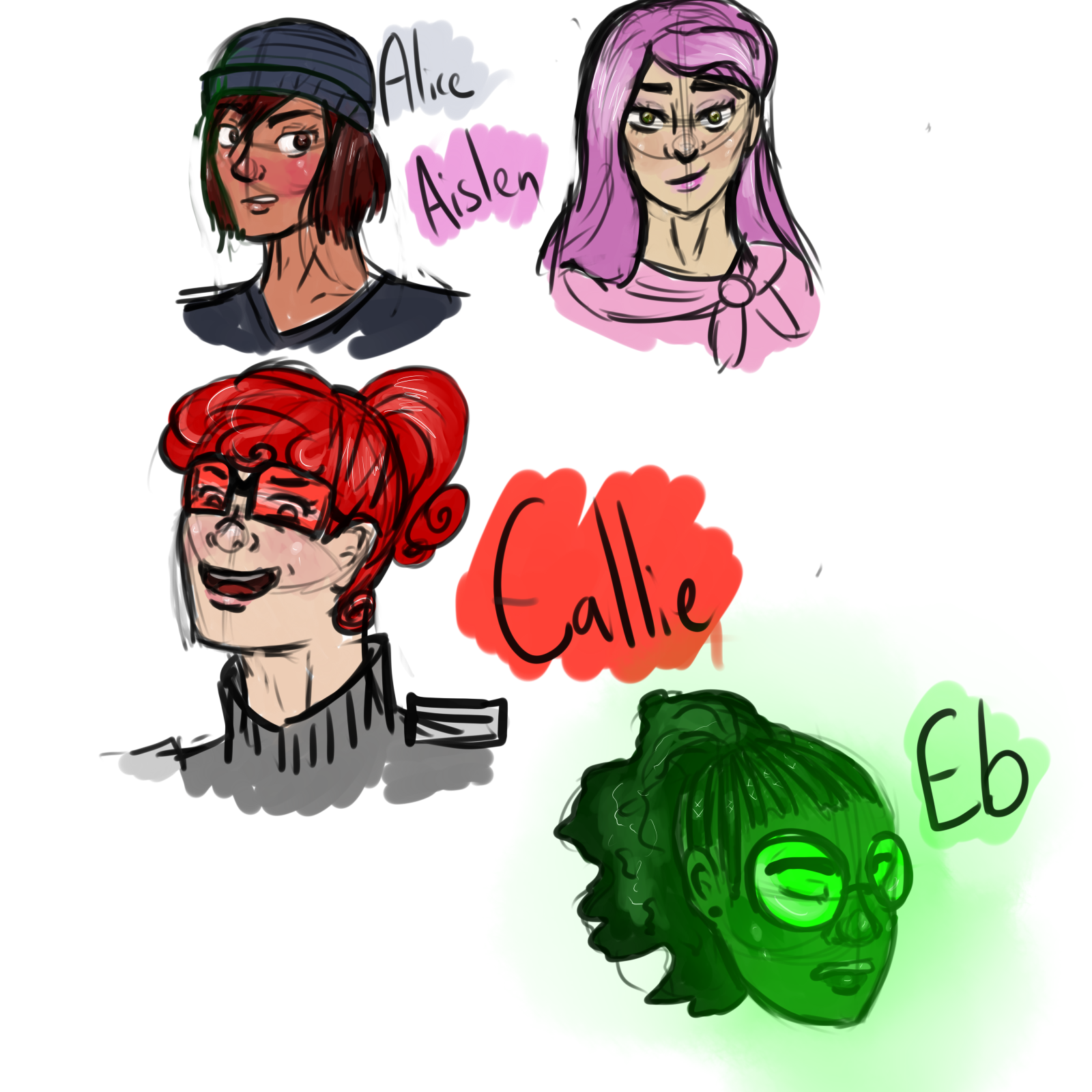 I drew a bunch of my old characters from 7th to 9th grade a while back. None of these guys were particularly...good, but I liked Eb enough that she's coming back as a minor character/program in AI Box Quest.