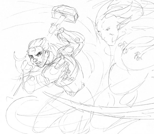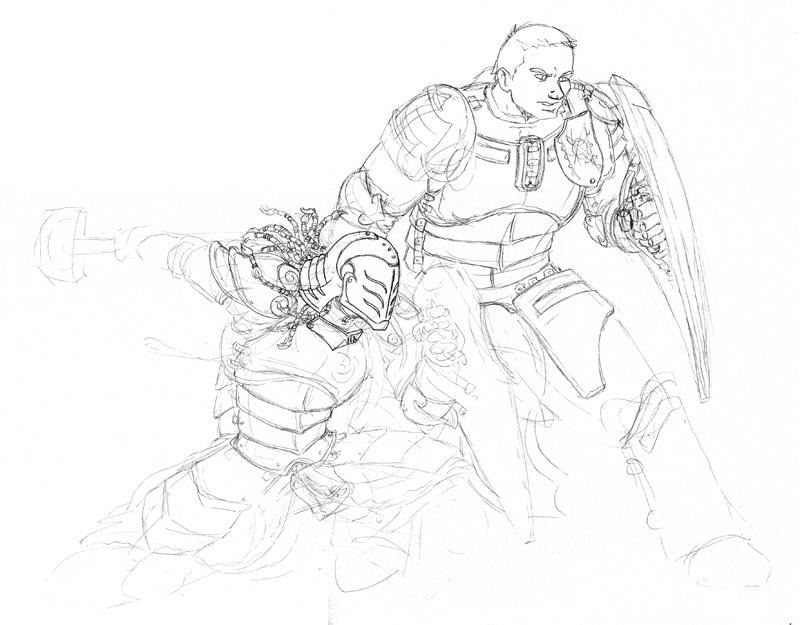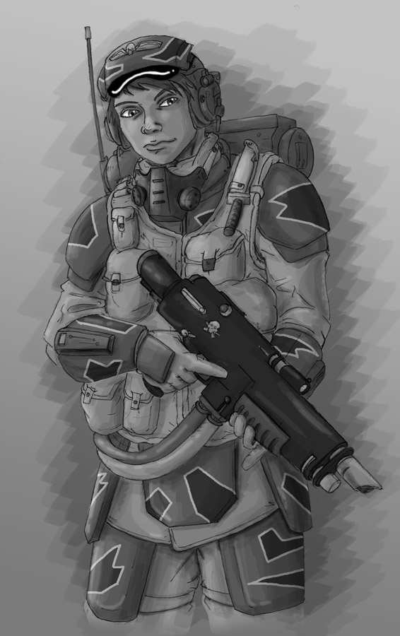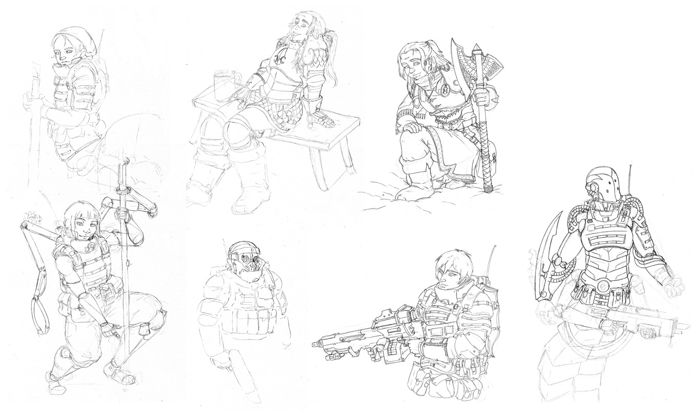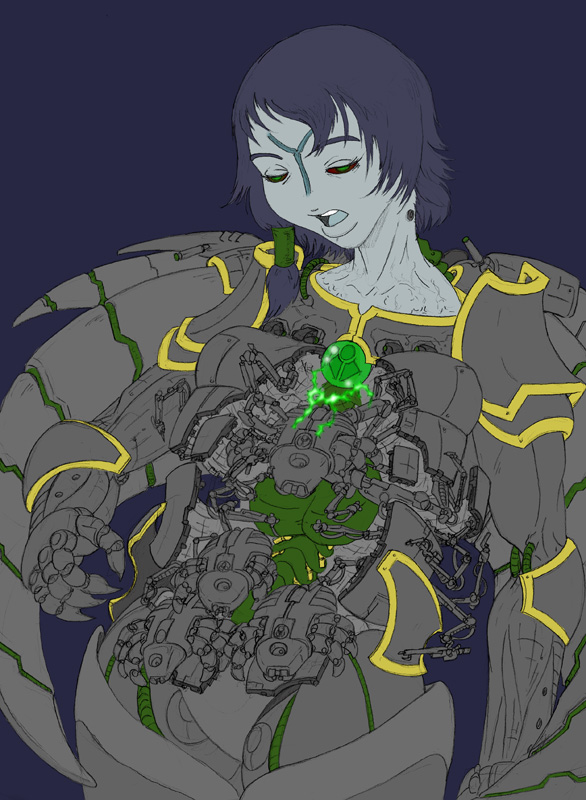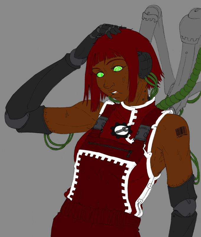 Not sure, took me a few days after work and half a weekend to get this far. main part of the work was the techpriestess herself and the background, everything else was done kinda quickly.
