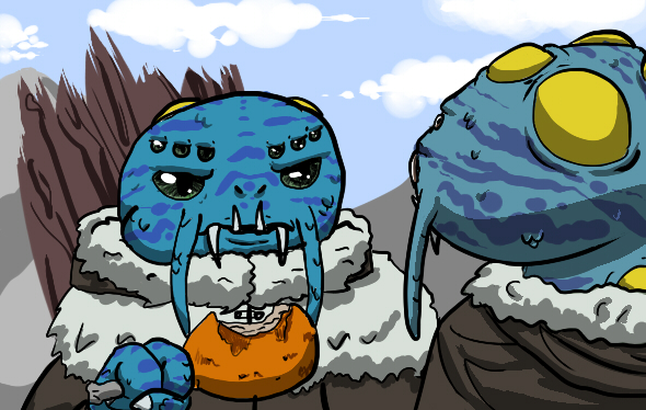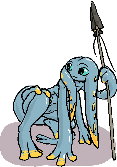 >>37105 Heh. There's actually a little story to that scene. It was to be part of an introduction for a tribe in a sort of civ game. A young aggrod (bird race) appears to be fleeing a higitain (giant bug), but is actually luring it into an ambush. Two other aggrods would jump down from a ledge atop the beast and strike it down. Then the tribe's chief awakens from her dream of her first hunt, in which she had to be the bait. Around then, it would be revealed that they are no longer in the swamp or jungle (haven't decided which), but rather the tundra. Here would begin the story of a tribe forced away from its ancestral homeland.