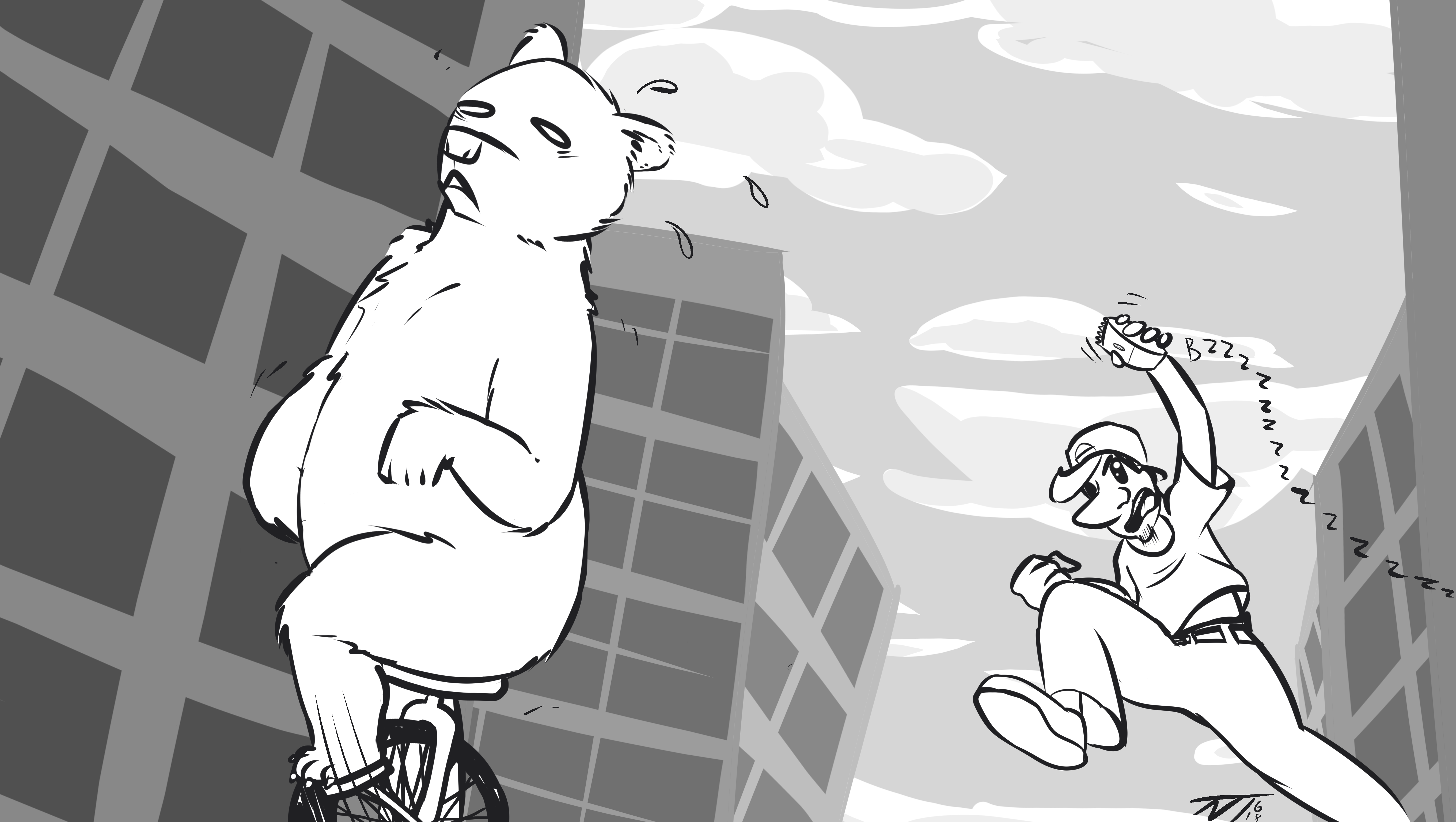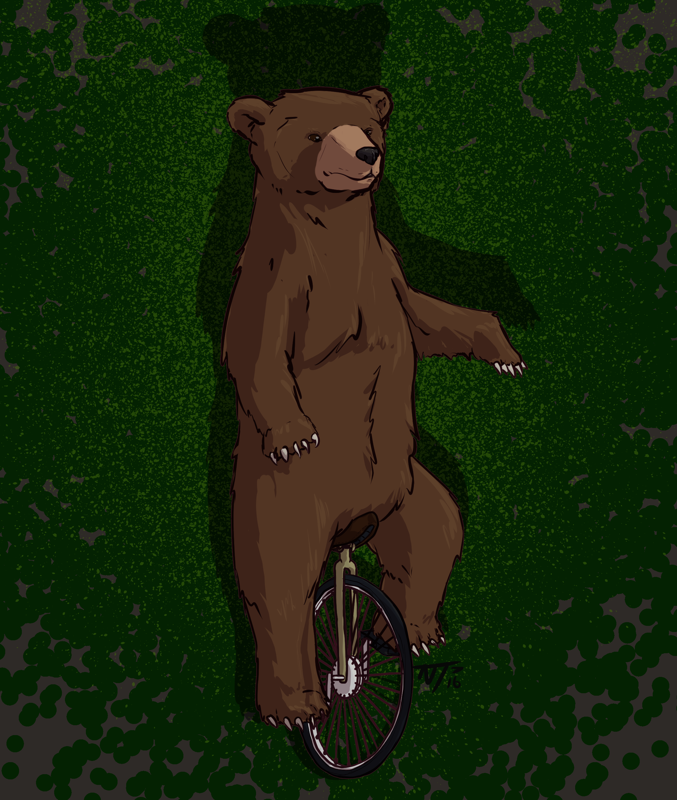 >>39456 Bear teaches Dog how to ride the unicycle. Dog is happy to have the father-figure that he never had growing up. Dog is an OC belonging to a guy by the name of Joeydrawss.