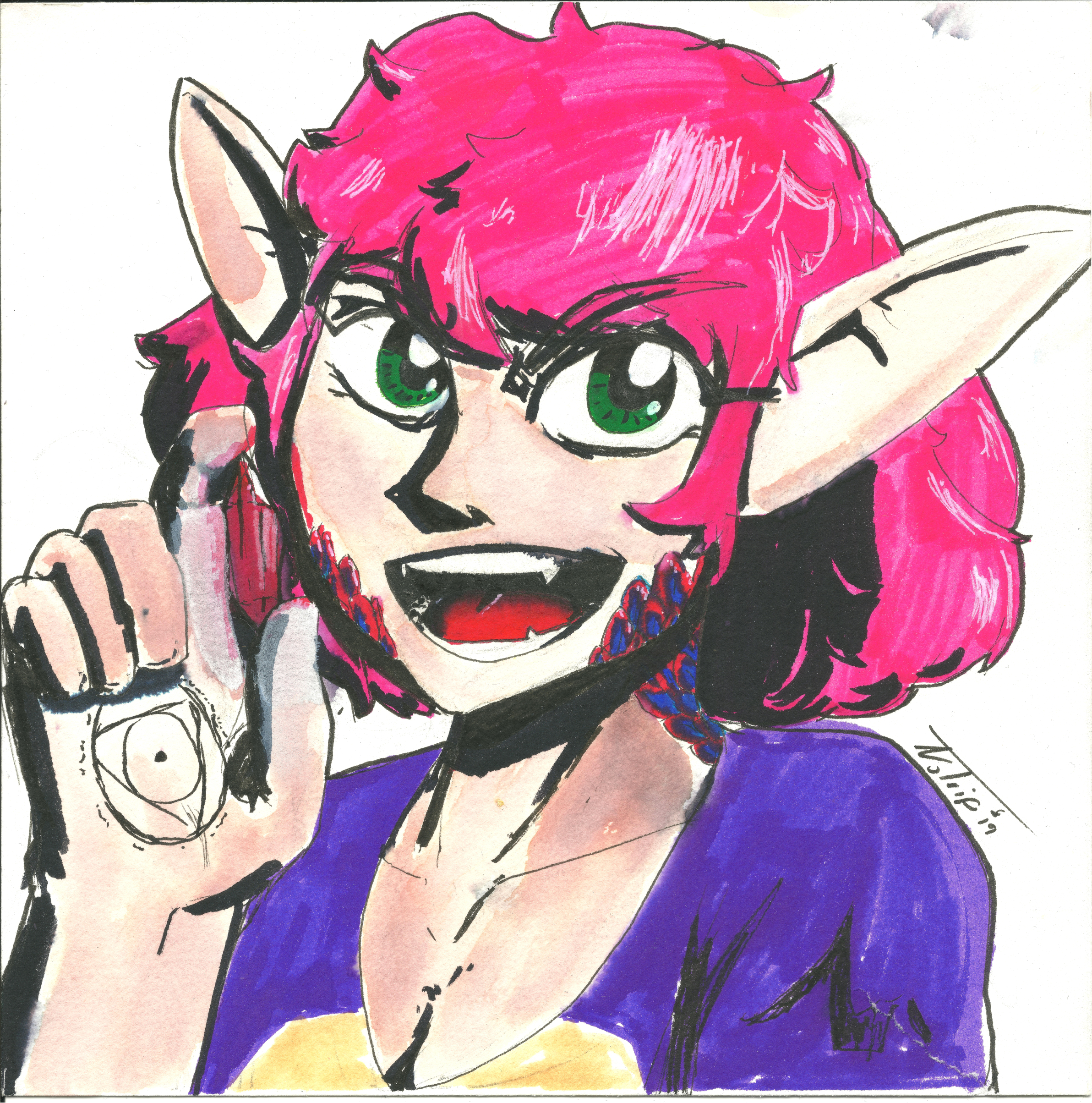I got a sketch of one of my characters a whle back. Colored it in myself last night. Original sketch by Flausch. https://flauschdraws.tumblr.com/post/177890709101/did-some-sketch-requests-tonight-on-stream