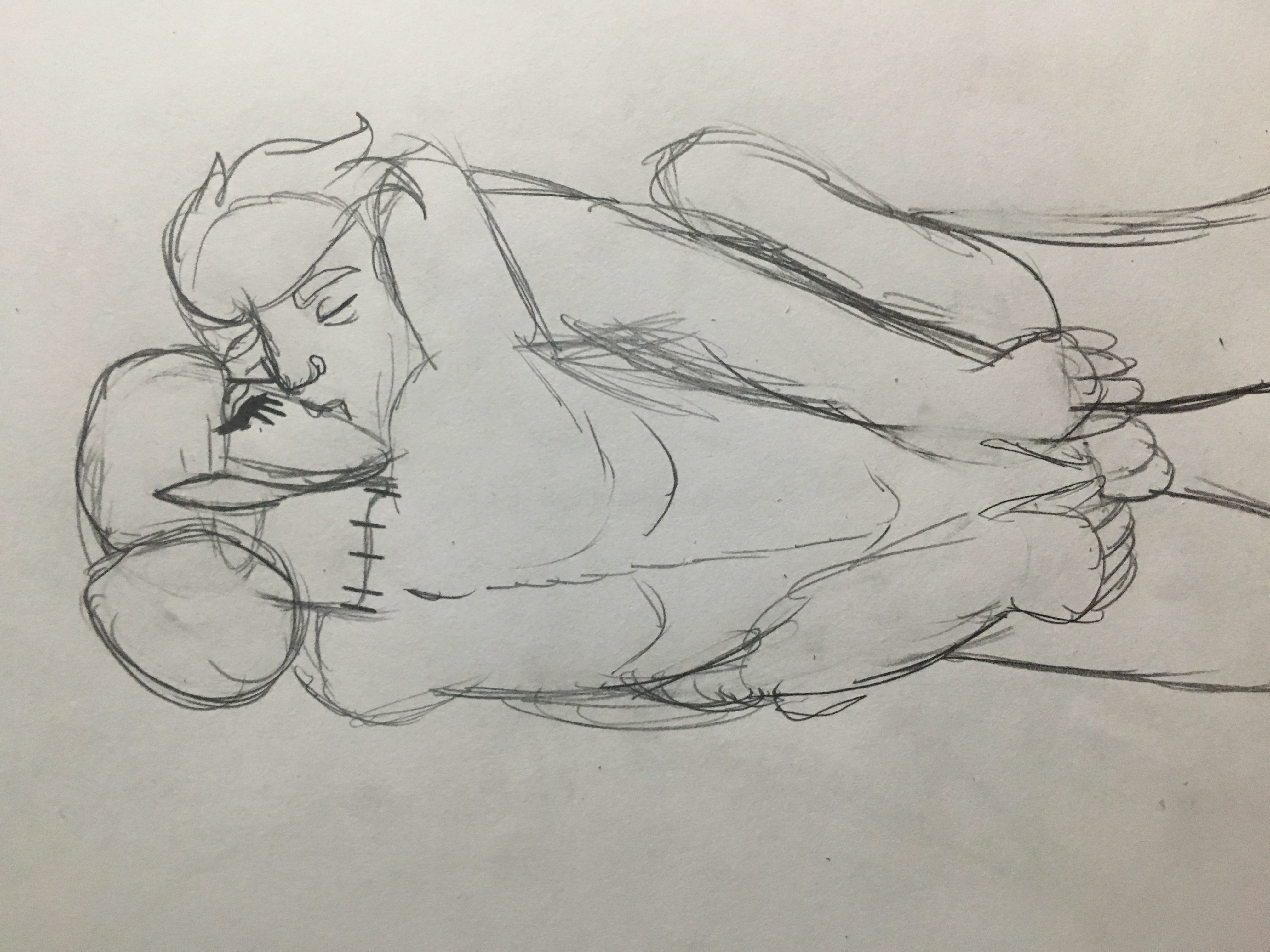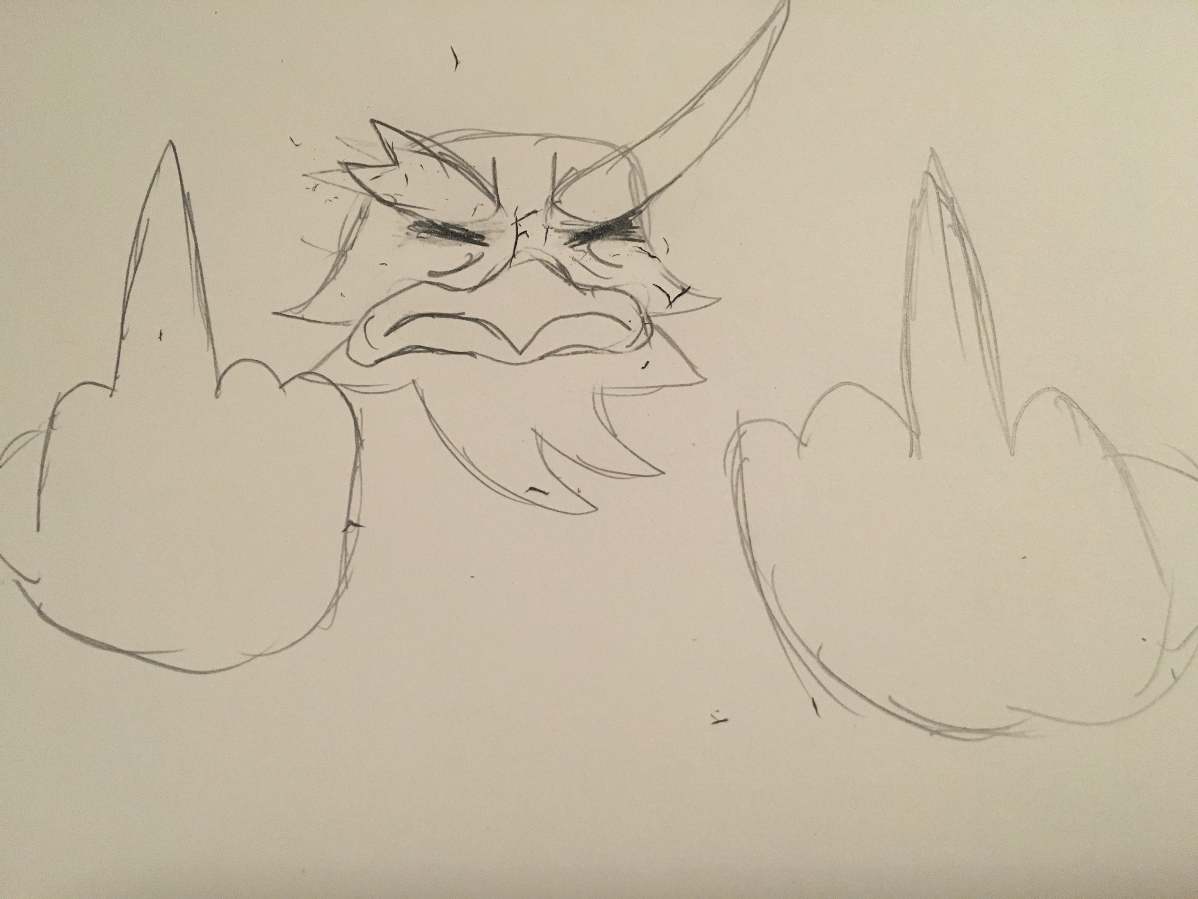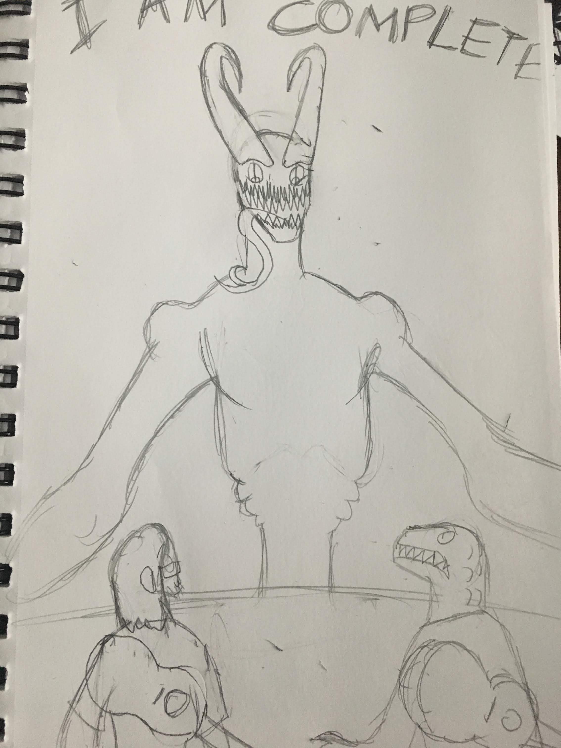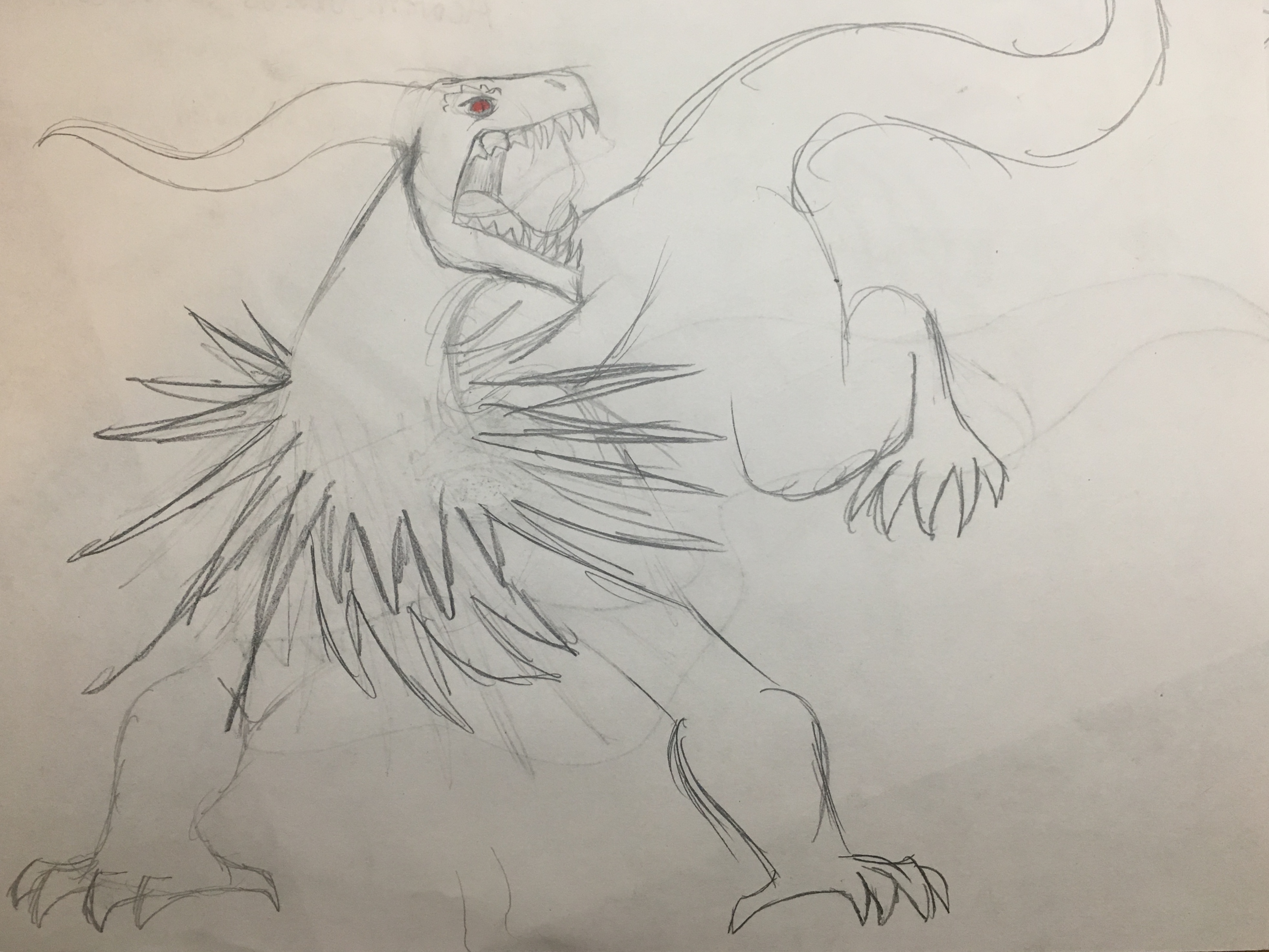 Her father’s face grew pale. “Get down! Get down!” He hissed, hiding behind a shop counter. She did as she was instructed. The trot of a horse grew closer, bringing with it the buzzing of a hundred flies. Cloven hooves clacked onto the cracked and broken linoleum tile. The creature scented the air, long ears flicking back and forth. The ink that poured down from its clouded eyes dripped down to the floor. A long tail ending in a tuft of dirty, matted hair. Its mane writhed with maggots, and a long, seemingly overgrown horn protruded from the center of its skull, closely followed by other smaller outcroppings. Its teeth were still covered in viscera, unfortunately old and dried on. The teeth themselves were long and jagged, almost as if they had grown out and broken at many different angles. A horrid stench surrounded it, akin to rotten meat and festering feces. It surveyed the abandoned convenience store, and after what seemed like an eternity of waiting, left. Emma opened her mouth to speak, but her father put a finger to his lips. They waited for thirty minutes. Finally, Blake lowered his hand.