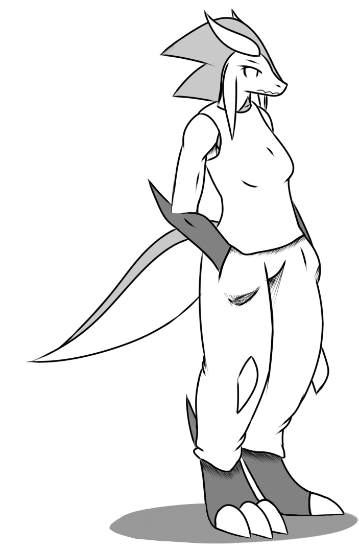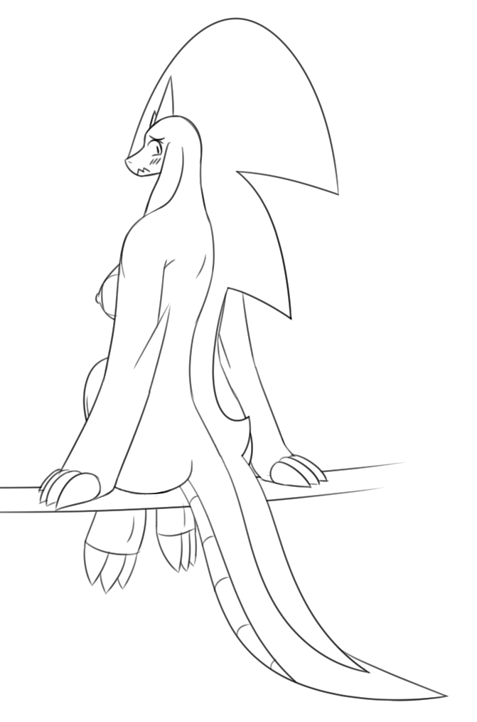 Her right leg, the calf should be visible. Basically, I don't think it's possible to completely hide the calf in a pose like that.