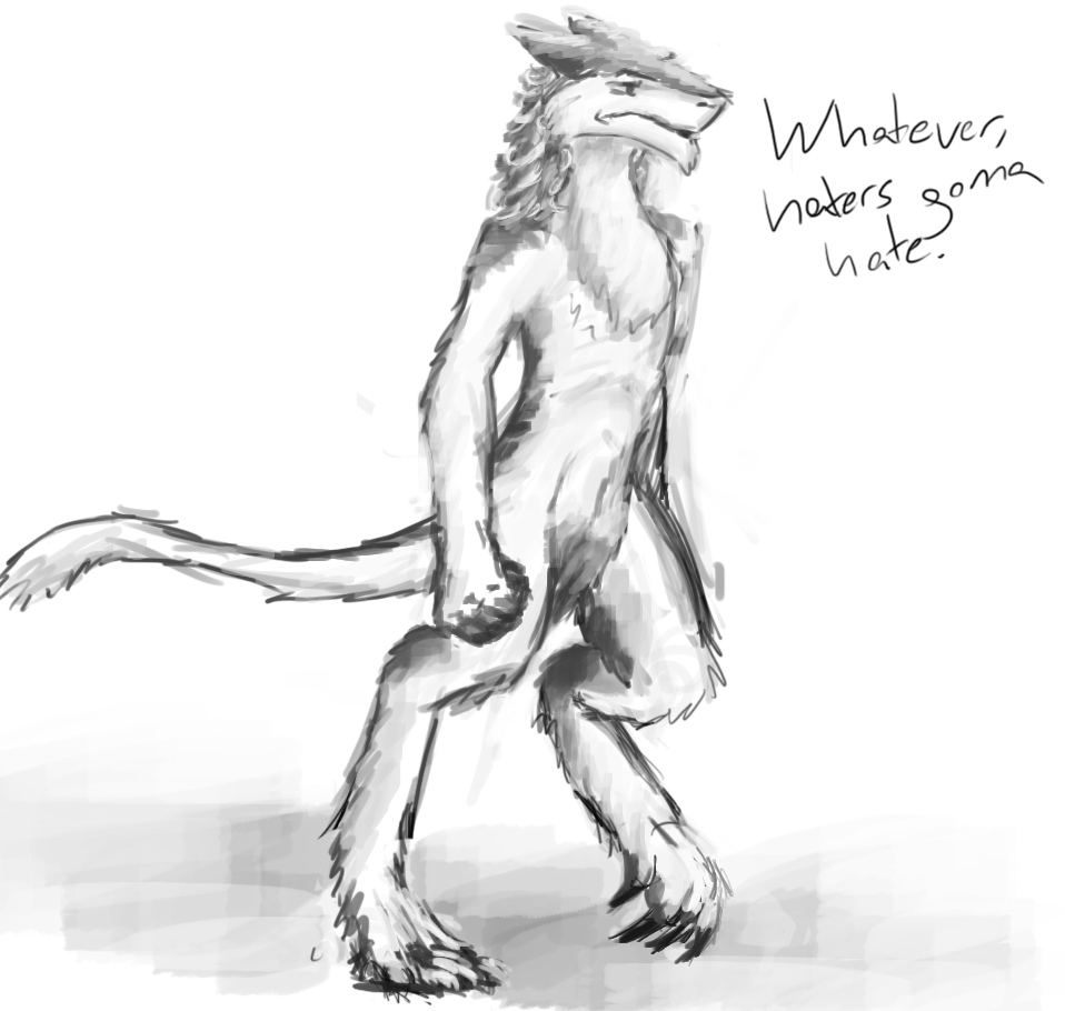 A gnoll, standing tall and brave; one who is a warrior, a fighter. He walks with a group of adventurers, their leader sparing the life of the gnoll when he surrendered, and teaching him the ways of knighthood and, in a way, experimenting to see if one is born evil, or if one can be changed from evil.