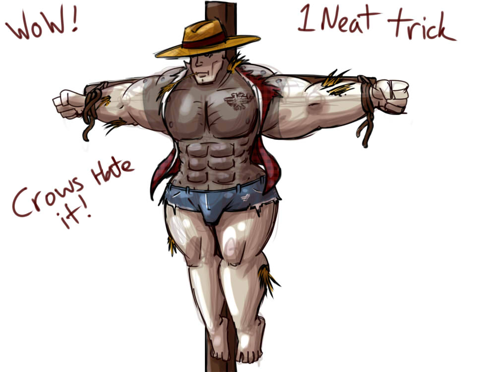 Wow man, that is one buff scarecrow. If you don't have another suggestion I suggest you to draw the thing that scarecrow was made to scare away