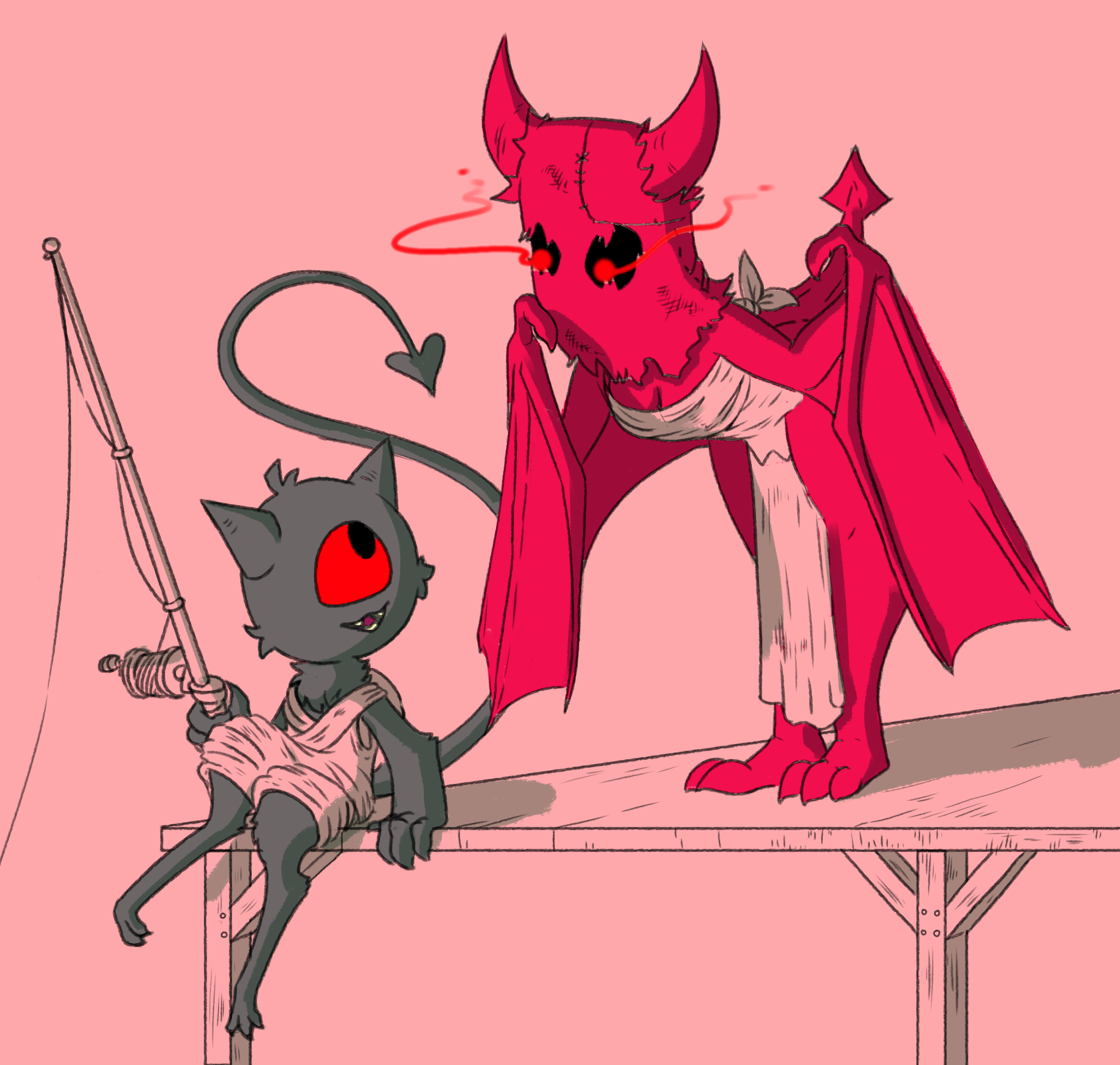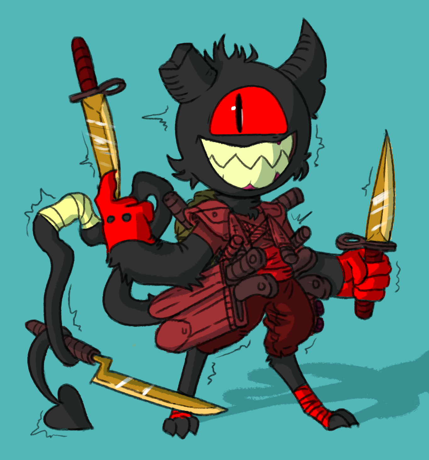 All these one-eyed imps reminded me of the one-eyed protag from the animated trailer for Dead Cells I rewatched today: https://www.youtube.com/watch?v=gX4cGcwmdsY. The tune for the trailer, Pan Master Slash, feels like it'd fit for these imps too.