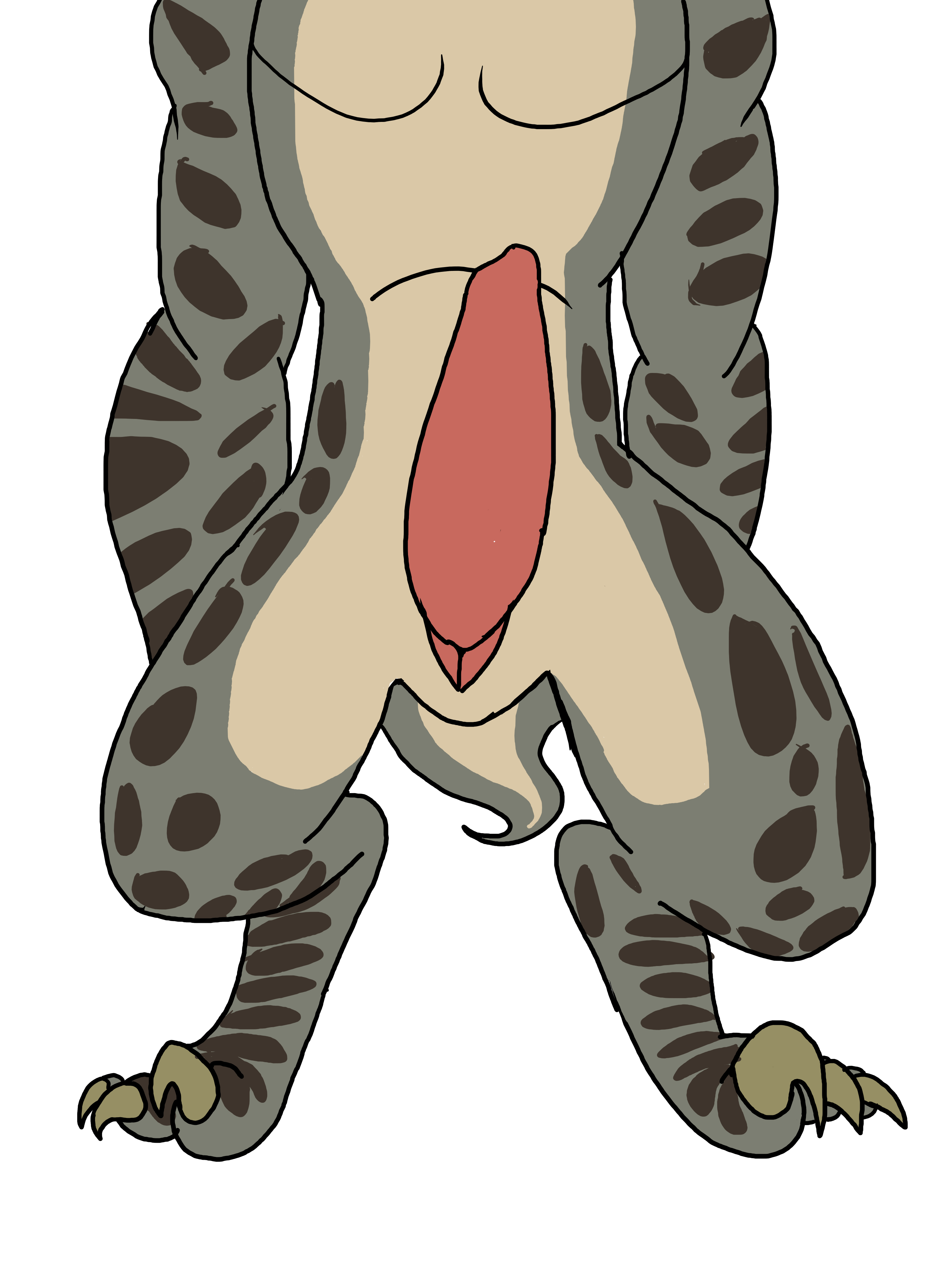 Female Deathclaws have a mixture of a psuedopenis and ovipositor, enabling them to implant their eggs inside another creature (In this case, our Intern, Belle) so they can be incubated more efficiently. The eggs are about the size of baseballs, and weigh anywhere from 8-16 ounces, and take 30 days to hatch. Young Deathclaws take 5 years to reach Maturity, and live for around 30.