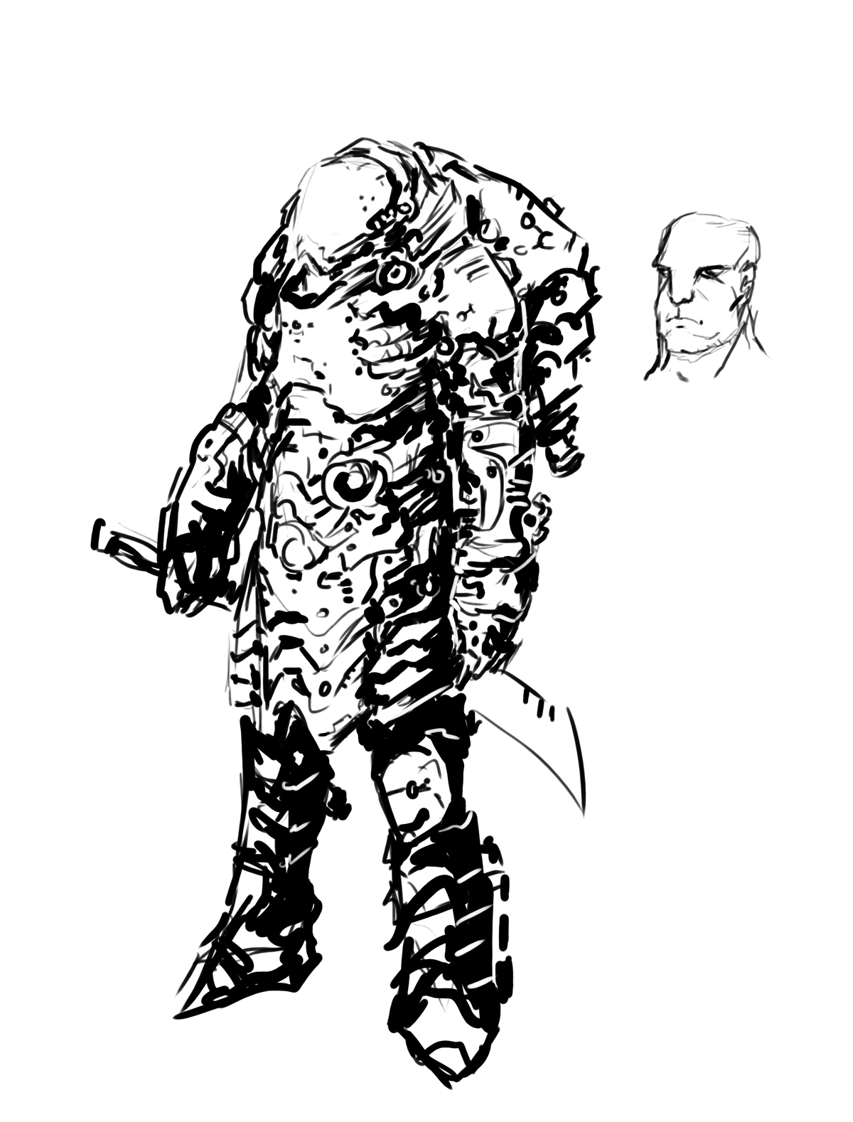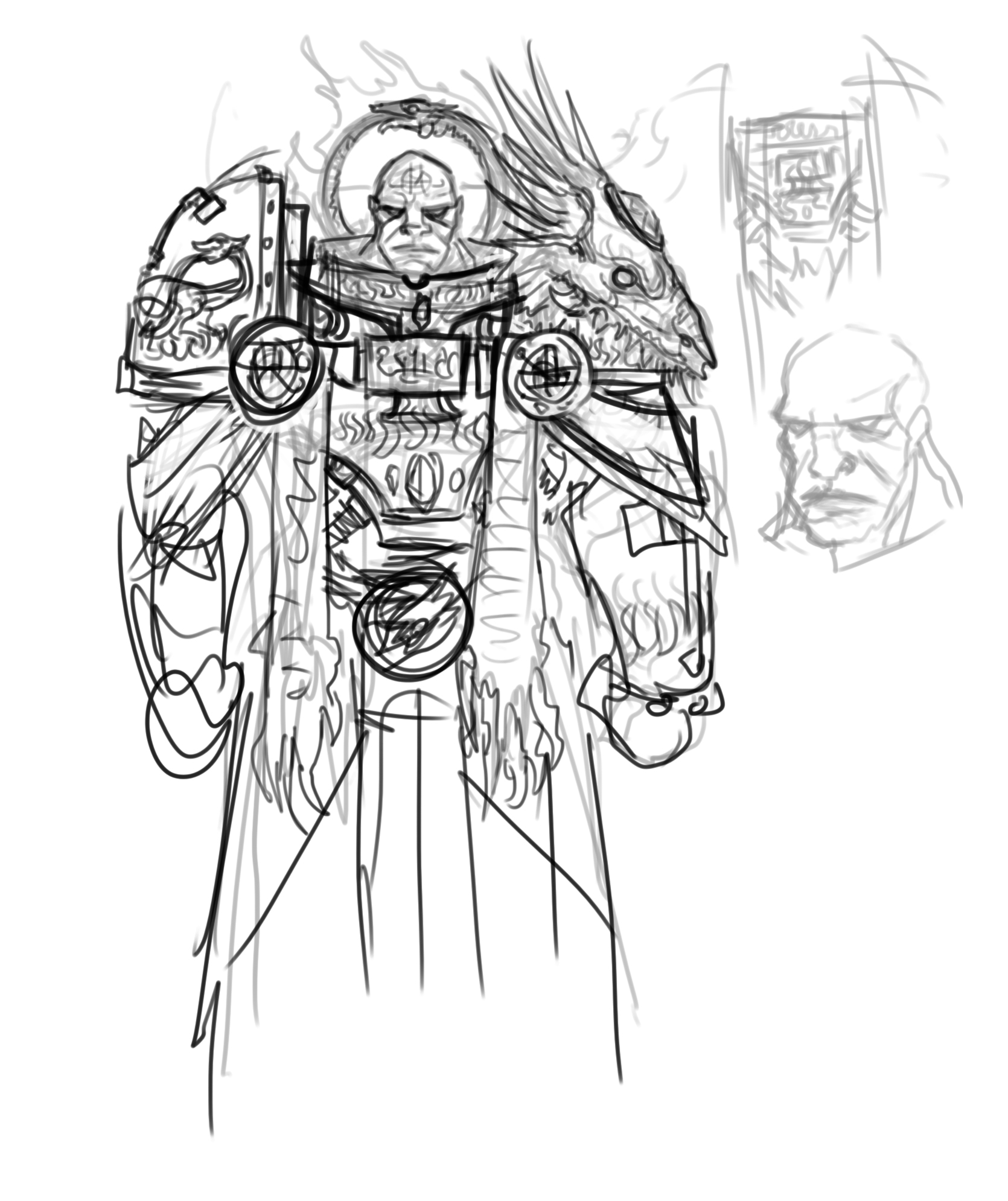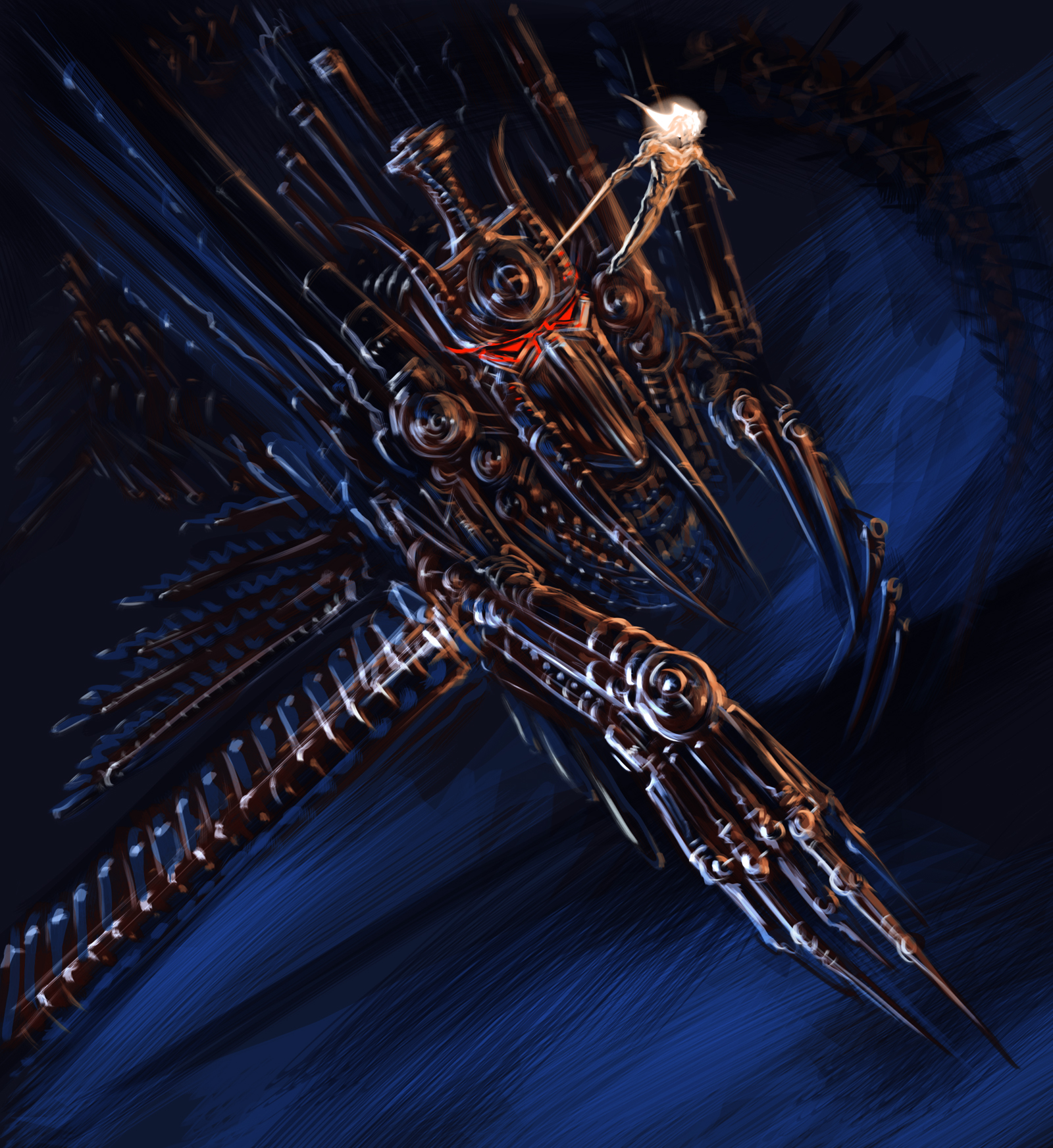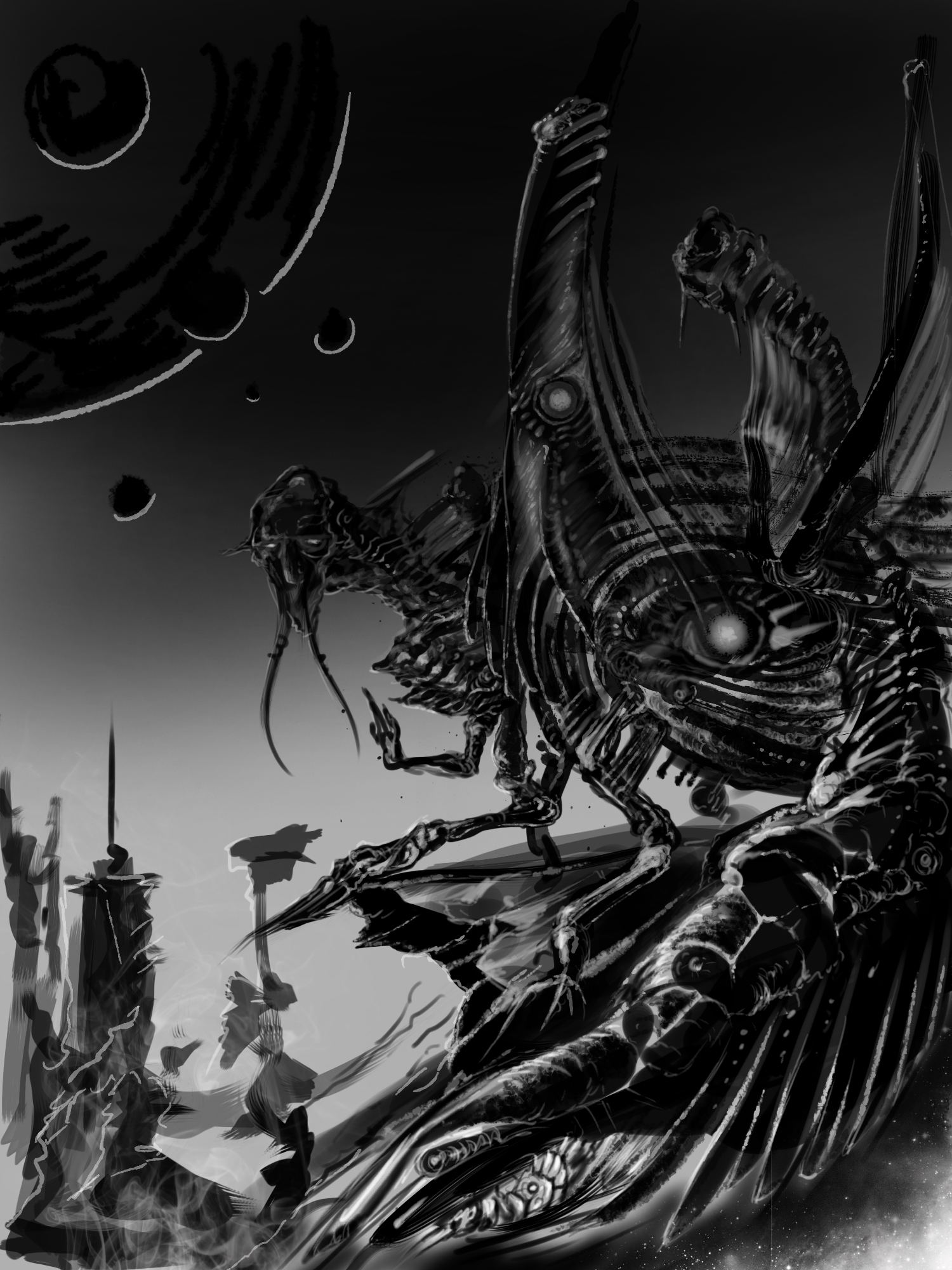 for 20€ and up, I have no accurate idea of what I could exactly do, but it could be something along the lines of the Duke Sliscus from a moth ago, or a simple ink painting, or a complete scene with several characters and a background. To give you an idea, I'd say that the Swarmlord pic would cost about 25€ ( 35$, appr) or enough to buy a couple of metal albums from my local music store, anyway.