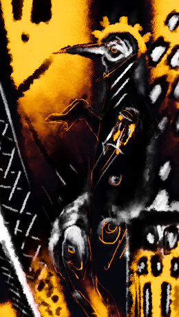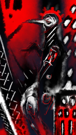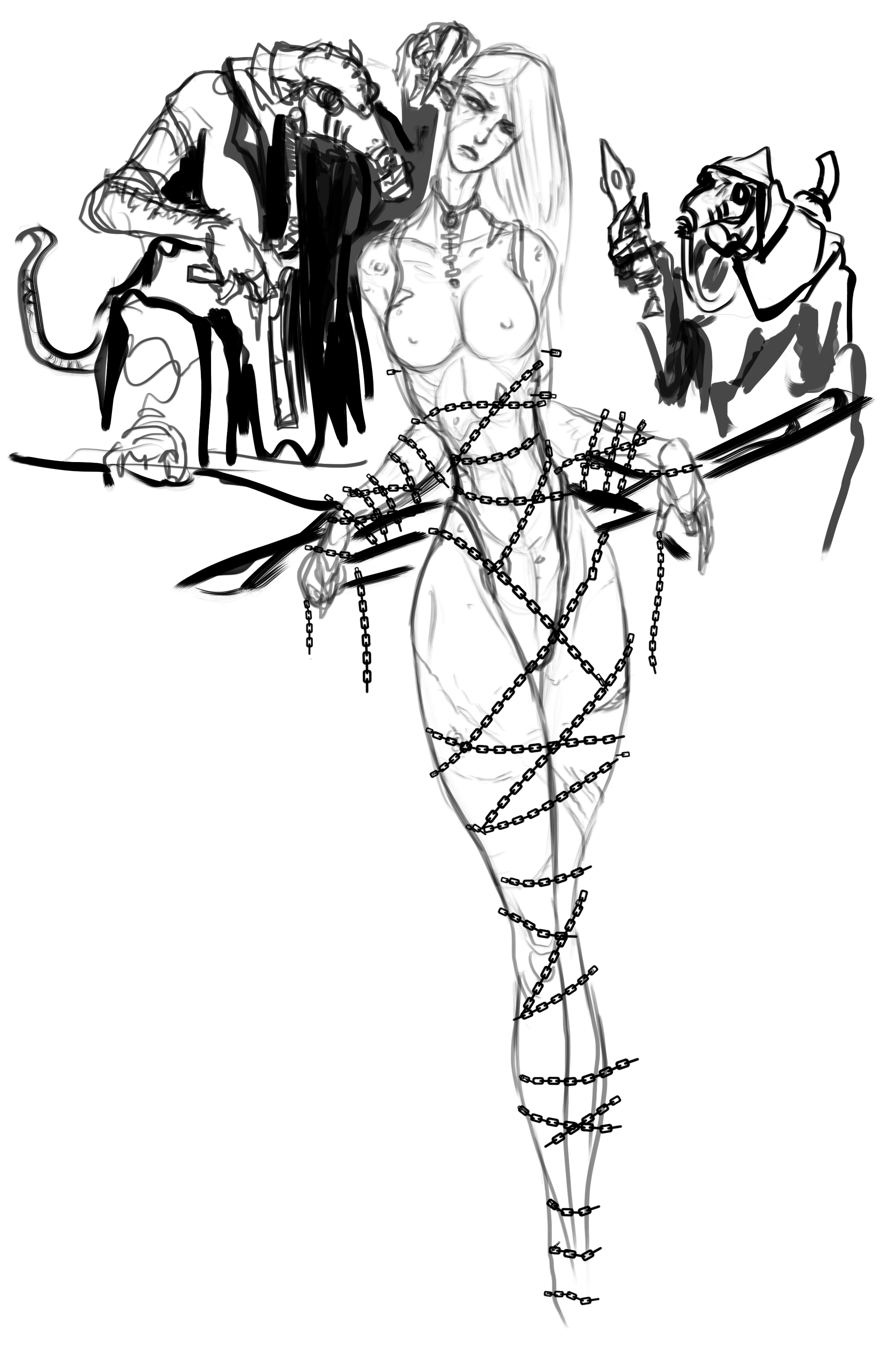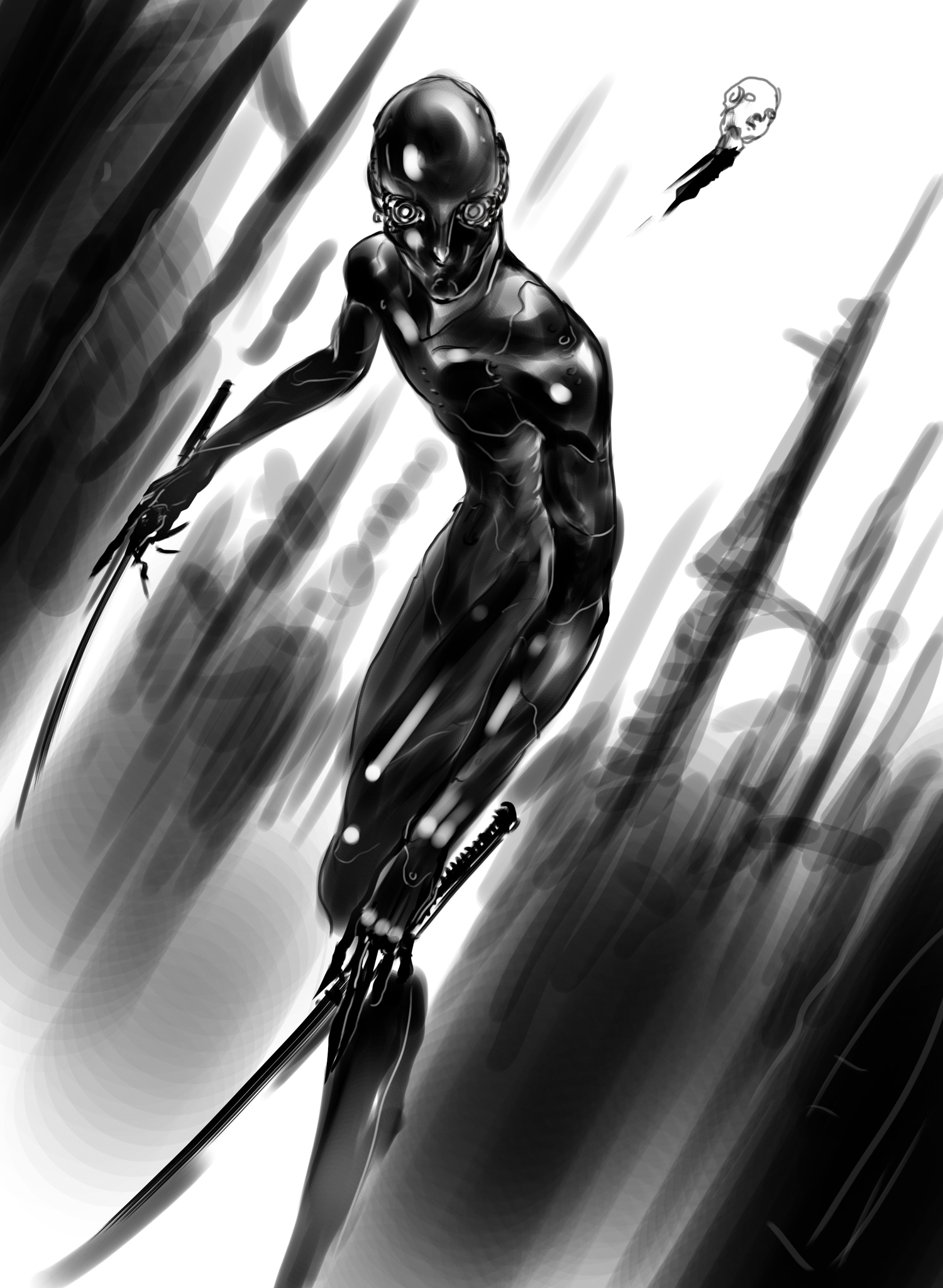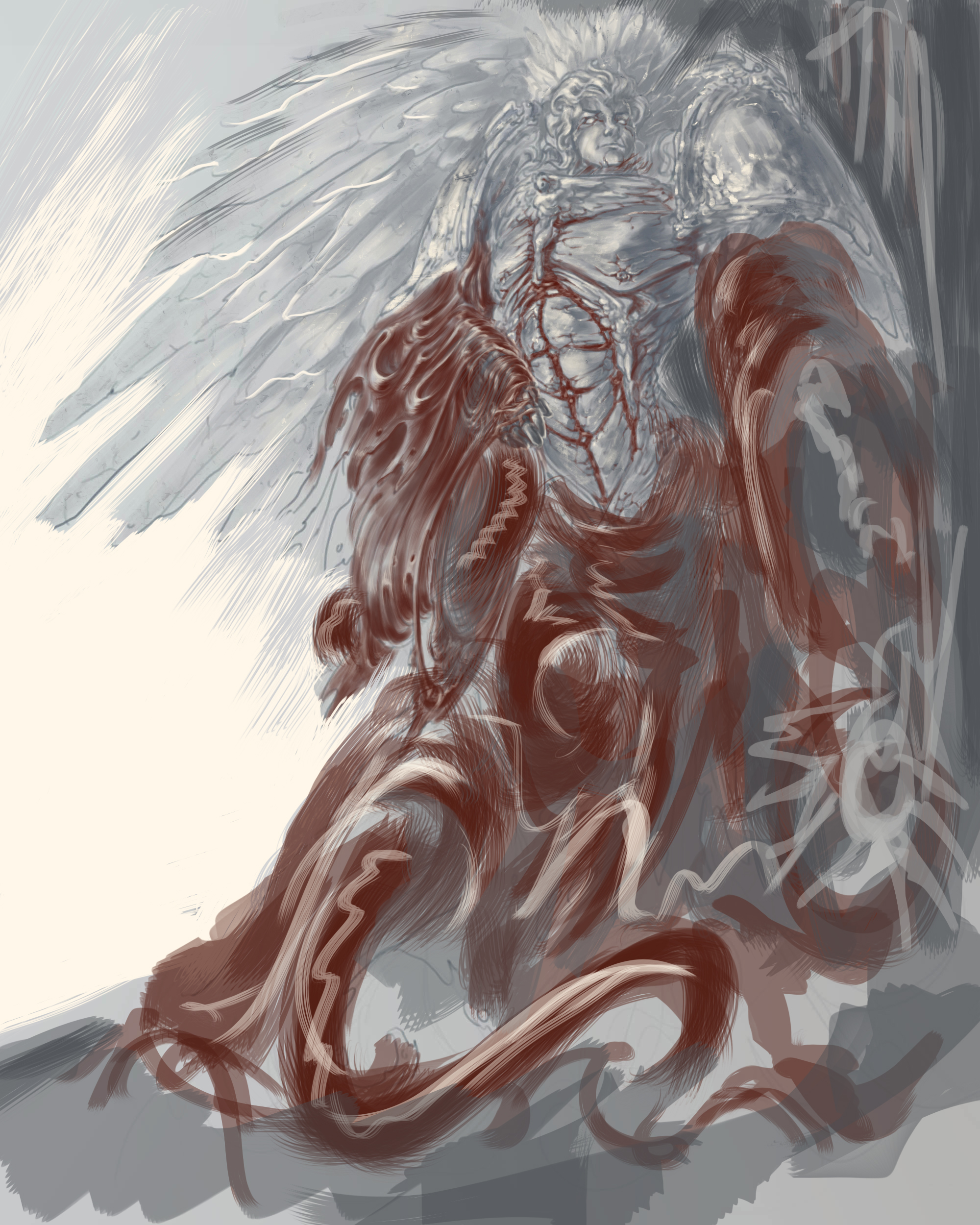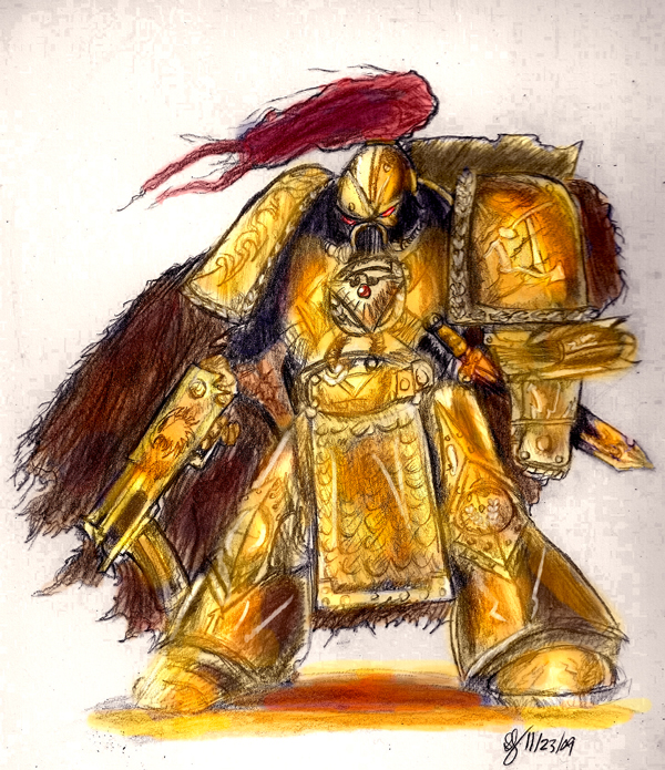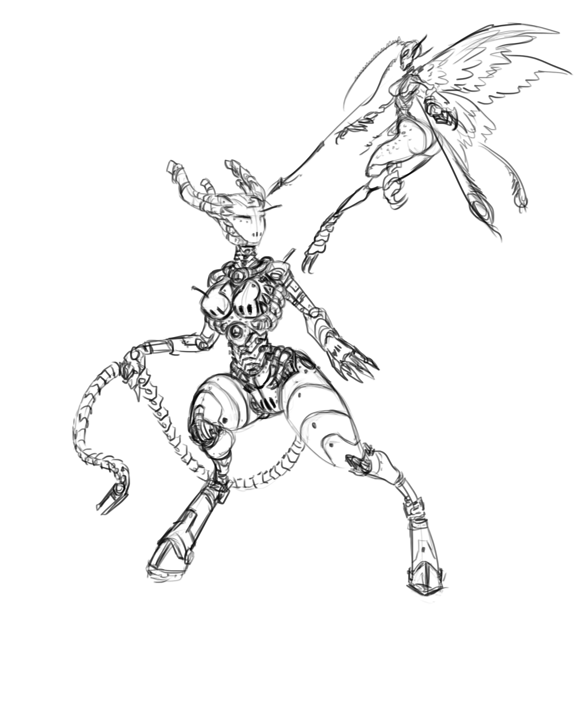 for 20€ and up, I have no accurate idea of what I could exactly do, but it could be something along the lines of the Duke Sliscus from a moth ago, or a simple ink painting, or a complete scene with several characters and a background. To give you an idea, I'd say that the Swarmlord pic would cost about 25€ ( 35$, appr) or enough to buy a couple of metal albums from my local music store, anyway.
