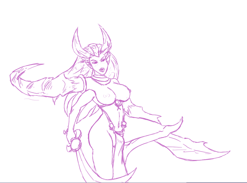 trying a new style here. I wanna make her look more Skull Girls/Wakfu, with some Slut Girl thrown in.