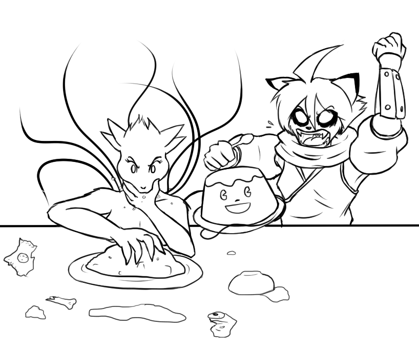 I finally finished the "Nutritious Meal" image from Wednesday. There was going to be more stuff in it, but now there's not.