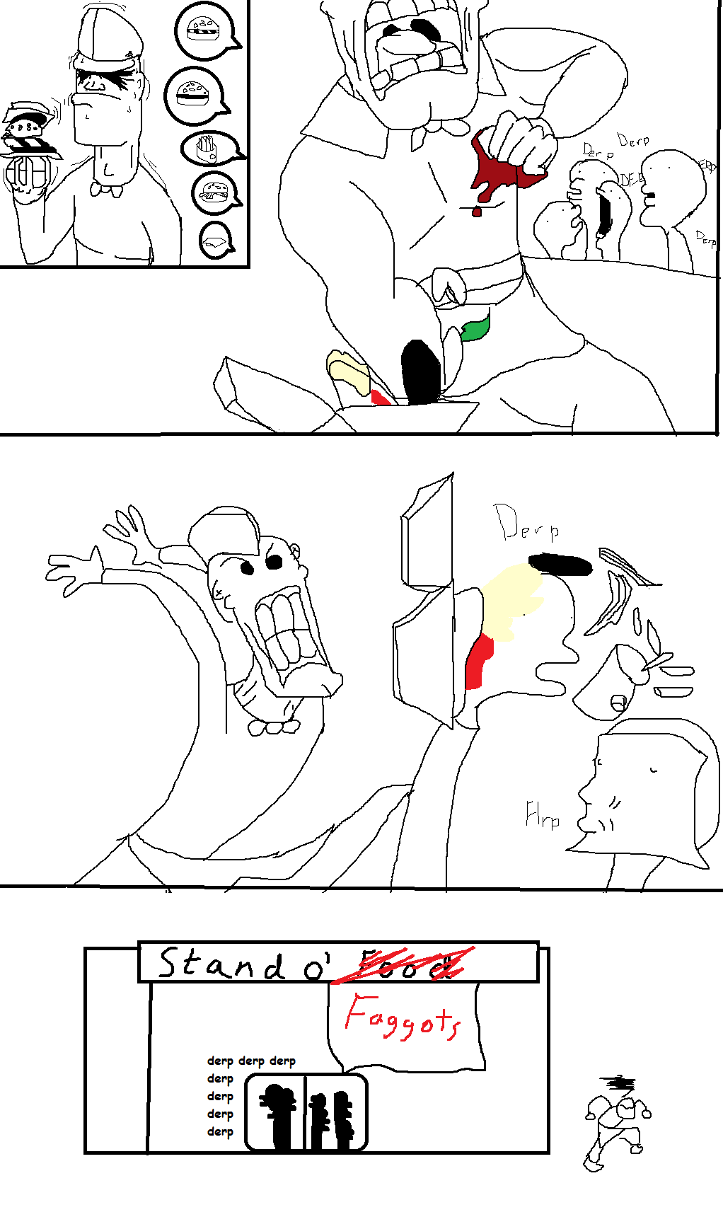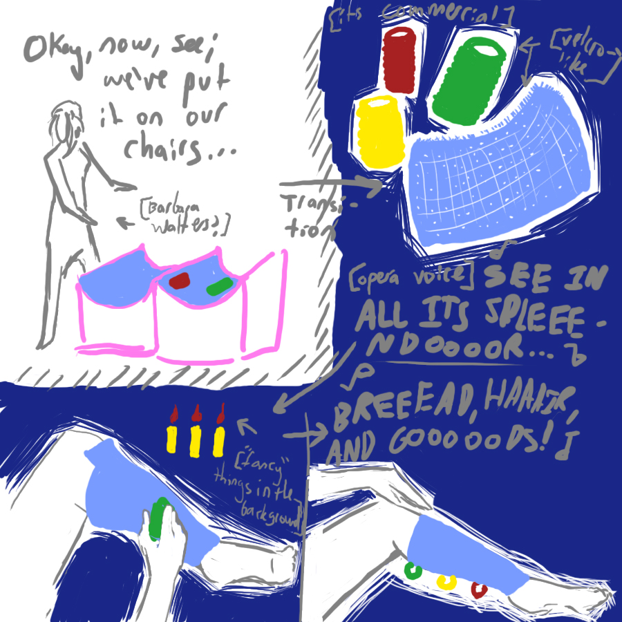 Oh FUCK this is gonna be an awesome thread. This one is from a year or so ago but it still amuses me to this day. Also (from what I remember), the background was REALLY fancy, like it had tables draped in red velvet and chandelier-like candelabra, but at the time I had to scribble this thing down before I lost it. And the roller things looked sort of like hair curlers.