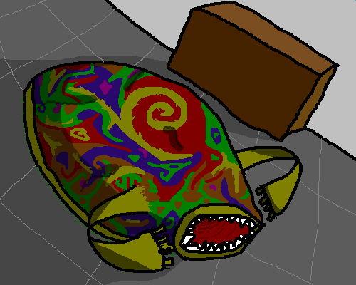 Drew this for a "MSPaint your nightmares" thread on Something Awful. It was some kind of monster with a weird and complex (and totally static) pattern on it. Also I guess it ate people or something.