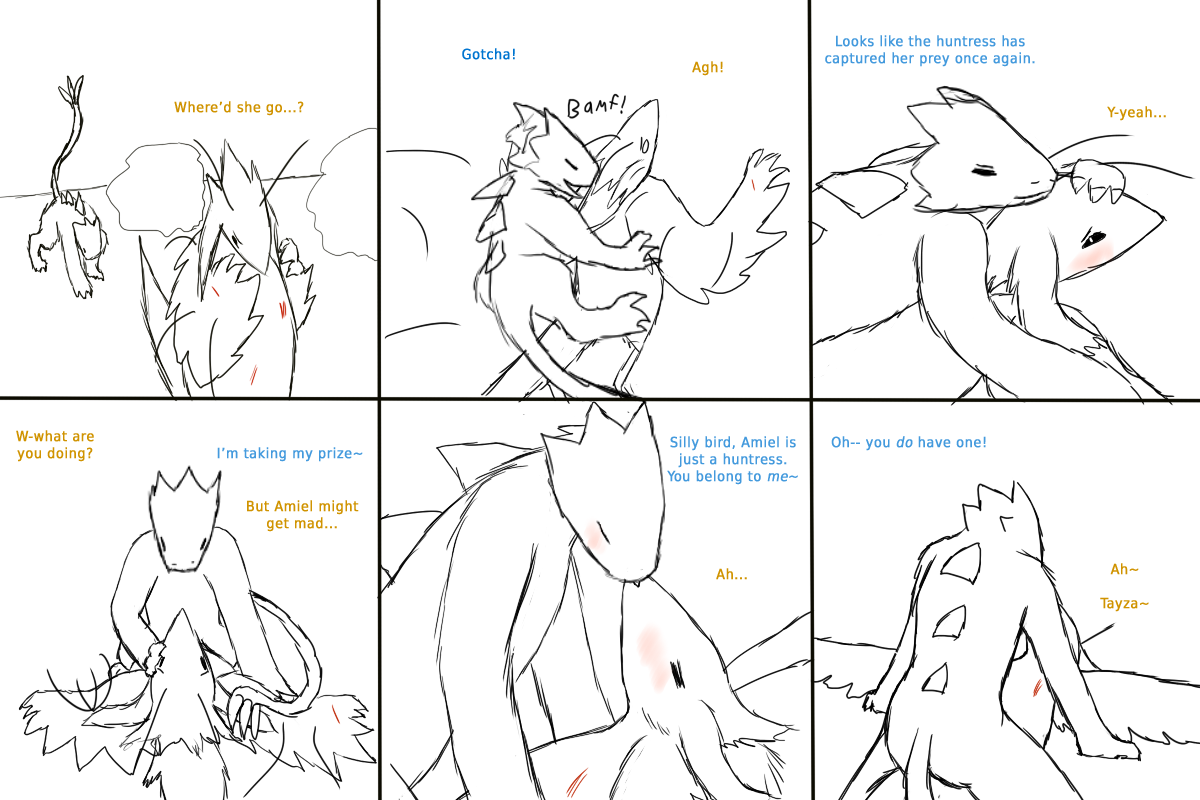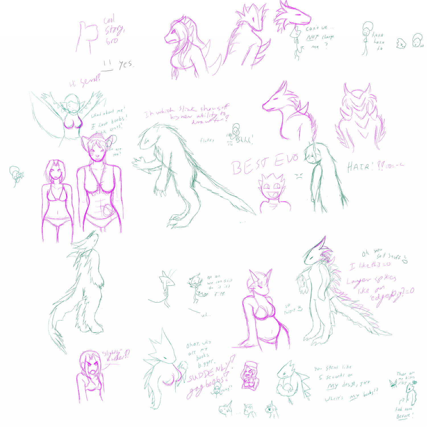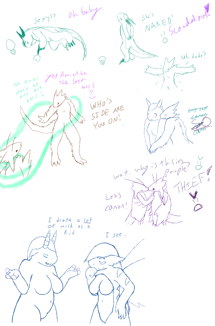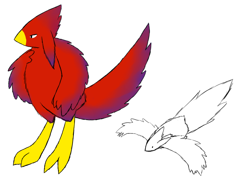 This was the original image that began it all. I designed a bird and a spikey guy, then made alternate genders. Everyone voted on who the hero would be, and the opposite became someone he or she would run into.