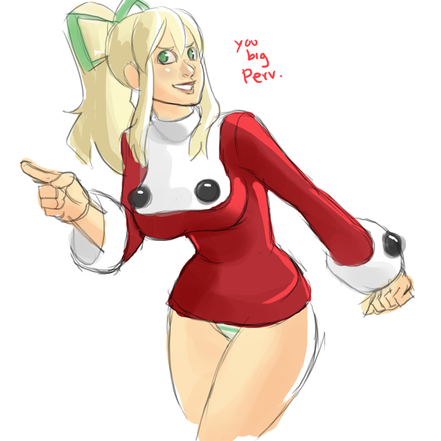 My request is this: either draw her in that outfit, or if you prefer, cheesecake it. I was thinking of she only wearing the cloak and nothing under, revealing as much or as little as you want. She has a 'come hither' look about her.