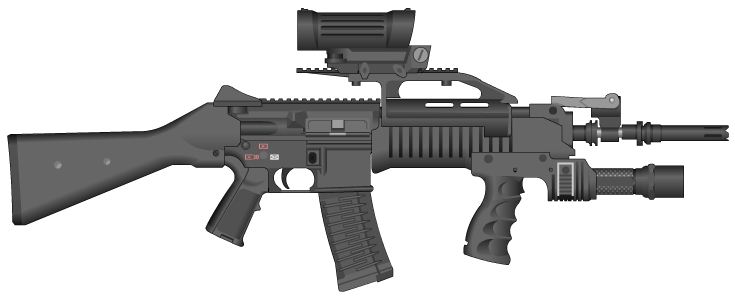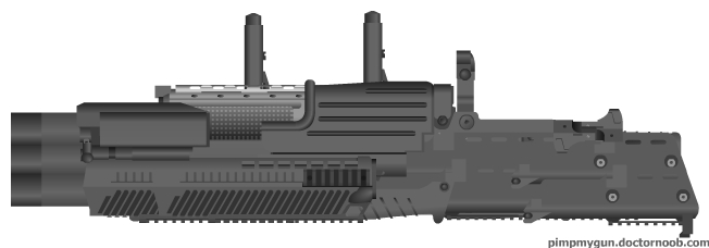 On a completely unrelated note: Enjoy my serious attempt at making my own gun. I was going for some kind of Bren gun thing using some of the new M249 parts, but then I had to figure out how I'd do the sight system and before I knew it I had a sniper scope. Also the stock sucks because M249. Enjoy.