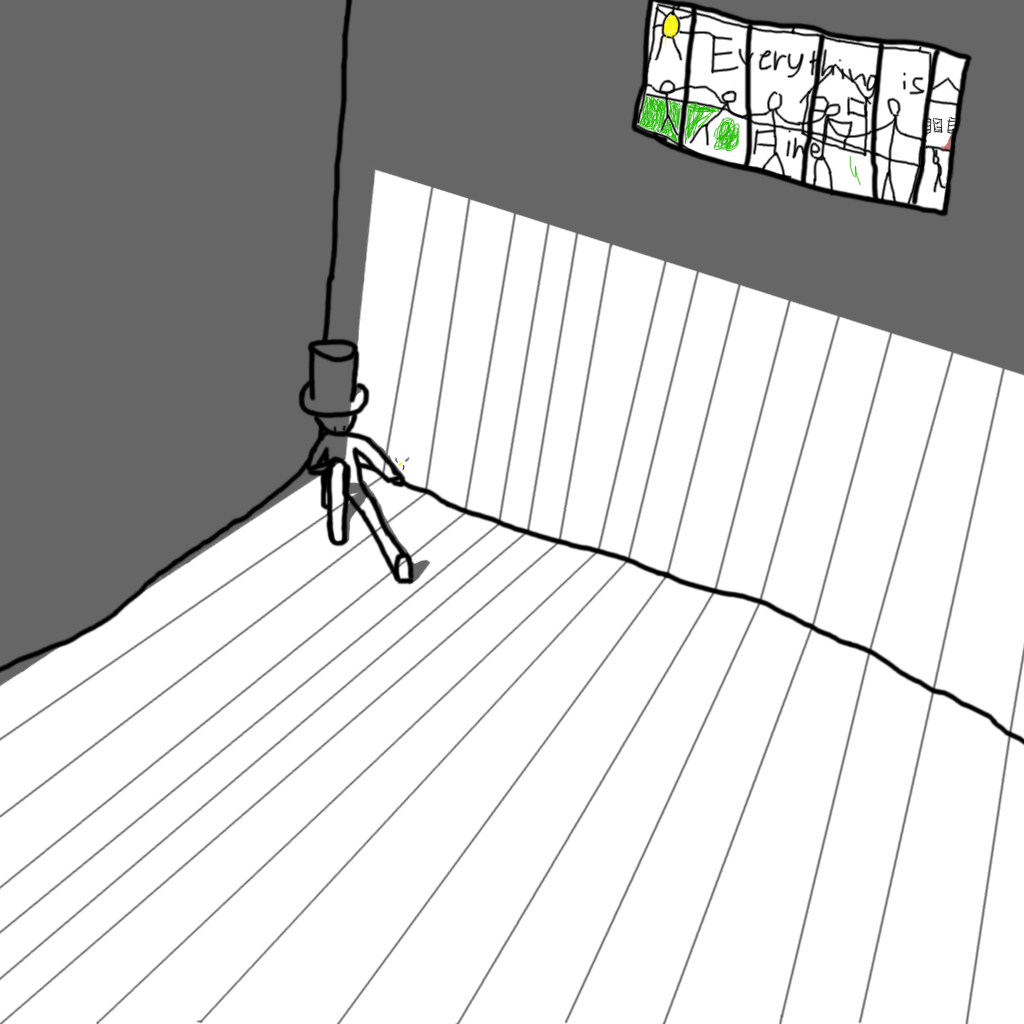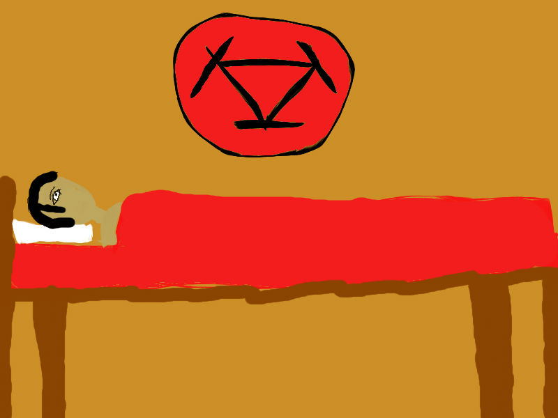 You’re awake. And something is very different. You feel...odd. The sensation that you’re currently having is hard to describe. It’s not exactly pain nor is it mere discomfort. In fact, the closest analogy you can think of for your predicament is having five liters of vomit stuffed into a one-liter bag. You also have trouble remembering what could have led to the state you’re in. Maybe it’s better to say that you’re having trouble remembering anything at this moment. Not to mention that you’re feeling bound, in a way. Actually, trying to move proves that you ARE bound. Tied, to be precise. With rope. And, apparently, you’re sitting in a chair. Upon opening your eyes, you’re met with nothing but darkness. Blindness? Oh, God, no...wait, feels like a blindfold. Some good news, at least. However, you feel that your hands are behind your back, immobilised by...the back of the chair you’re sitting in. You’re certain that you can’t move your legs individually either. But, something isn’t right about all this tied-up business. It’s as if your joints have never been this close to each other before and your clothes feel very drafty, like they’re just hanging off you. You wiggle in an attempt to free your arms, only to discover that your hands and legs are bound together with more rope under the seat. Whoever did this to you was not born yesterday. In protest, you give it another futile try to free yourself and the chair uncomfortably creaks under your movements. “You awake, kid?”