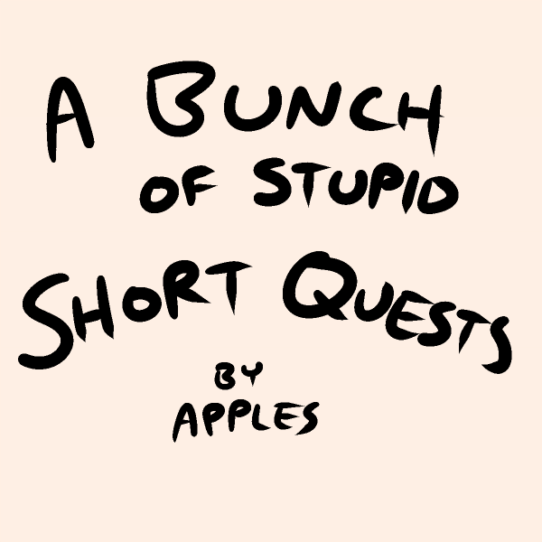 Apples Presents: A bunch of stupid short quests too dumb for their own threads. This is very stream of consciousness so be prepared for, nay, expect NSFW themes mixed in with the stupid fun stuff.