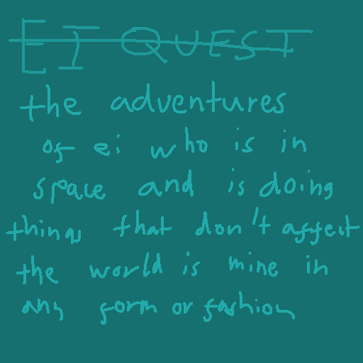 This quest is a one shot and it will hopefully be short. I'm trying to see if i can learn how to keep on the main idea without losing focus or distracting myself and the suggestors.