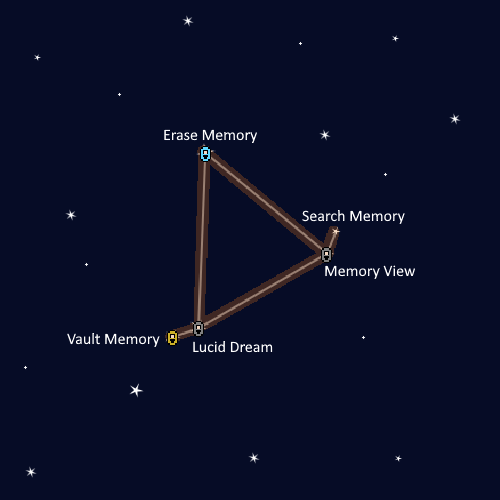 Welcome to the skill stars! Each constellation of Fetacivs has many stars locked away from you at the moment, but with each lock opened you gain access to new powers, you can only branch out to skills that are adjacent to the skills you have unlocked. There are also four types of locks.