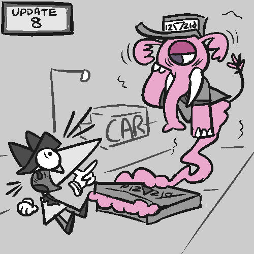 With that, Jerry decides to think about what to do during this SECOND CHECKPOINT. He considers that he has 13 UPDATES left before it’s too late, and maybe about 5, or 7 SITUATIONS to get through. so he has PLENTY OF TIME before he has to hit the road again. Maybe enough time to grab a drink? Though, he might get INTOXICATED if he does that… in any case, there’s a lot of options, so he decides to think about what he might still need to do before he heads back on his Pizza run…