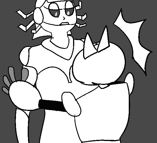 She sighs, though I’m not sure what she’s annoyed at. “That’d be her. I suppose you’re here about her payment, then?” She looks around- why, I don’t know. “Come on, then, and bring your...assistant.” That’s a rather unpleasant look she’s giving Ms. Geargoose. I don’t think she noticed, however- the poor dear seems rather starstruck! “The cleaning stations should be quiet enough at this time of day.” Oh? Hm. Well, if she insists.