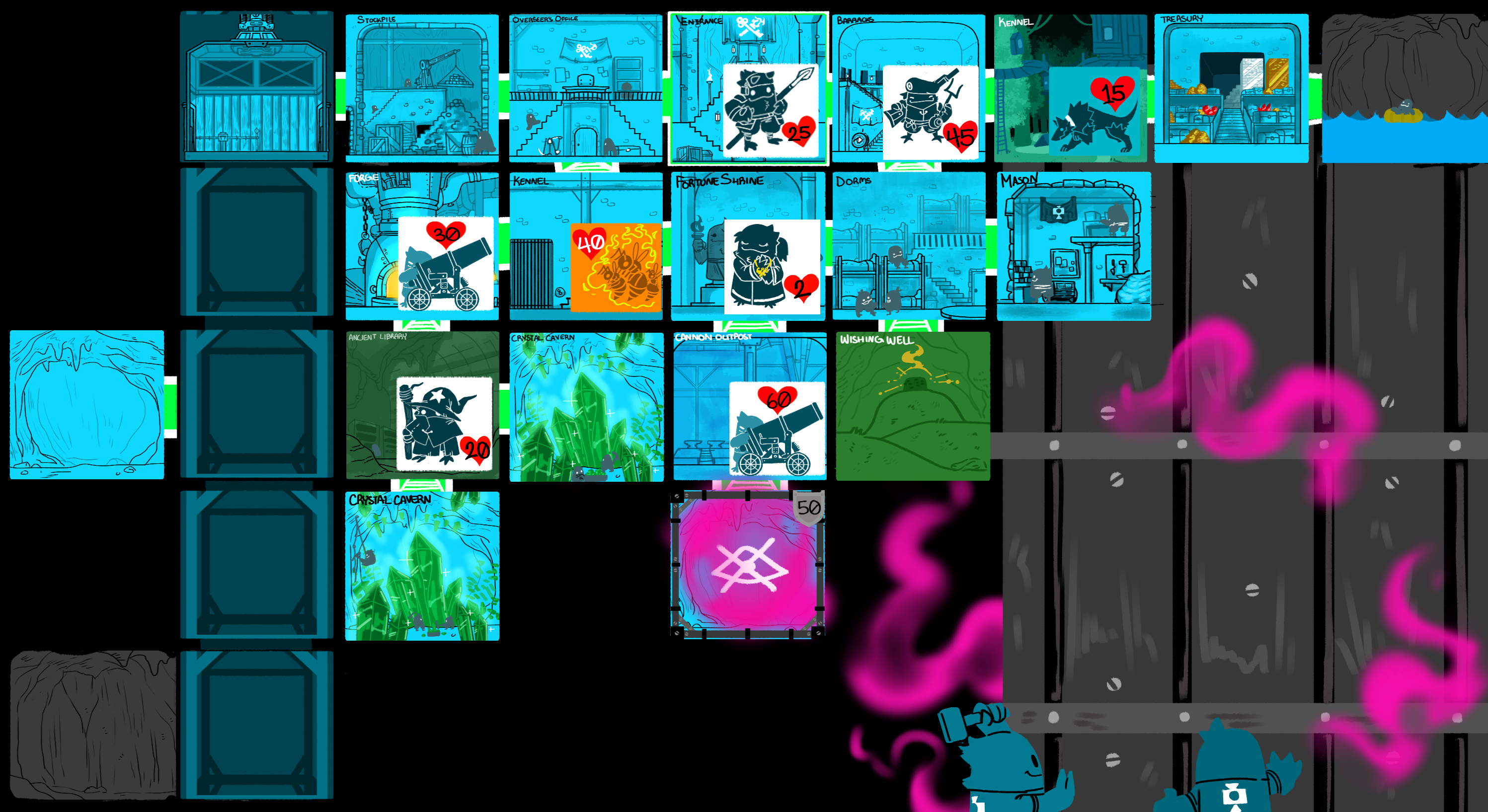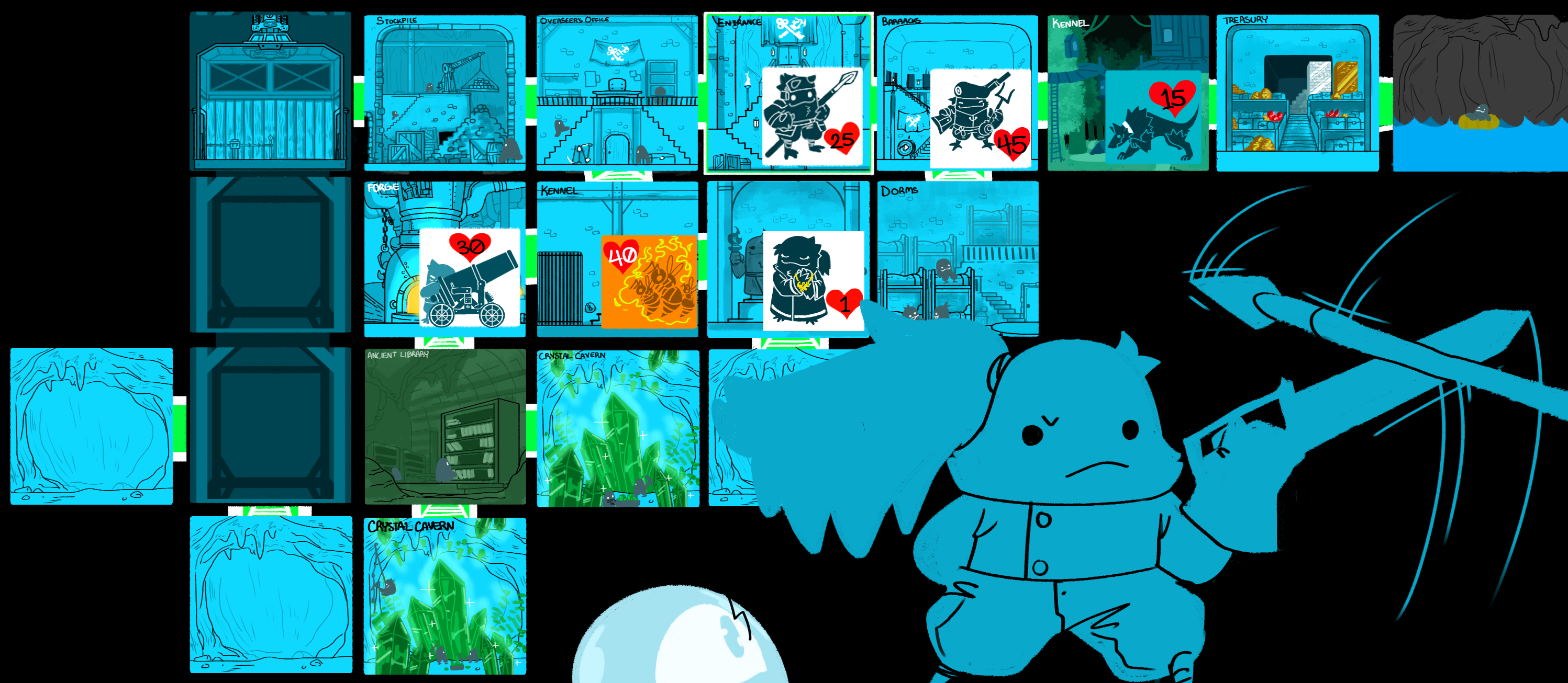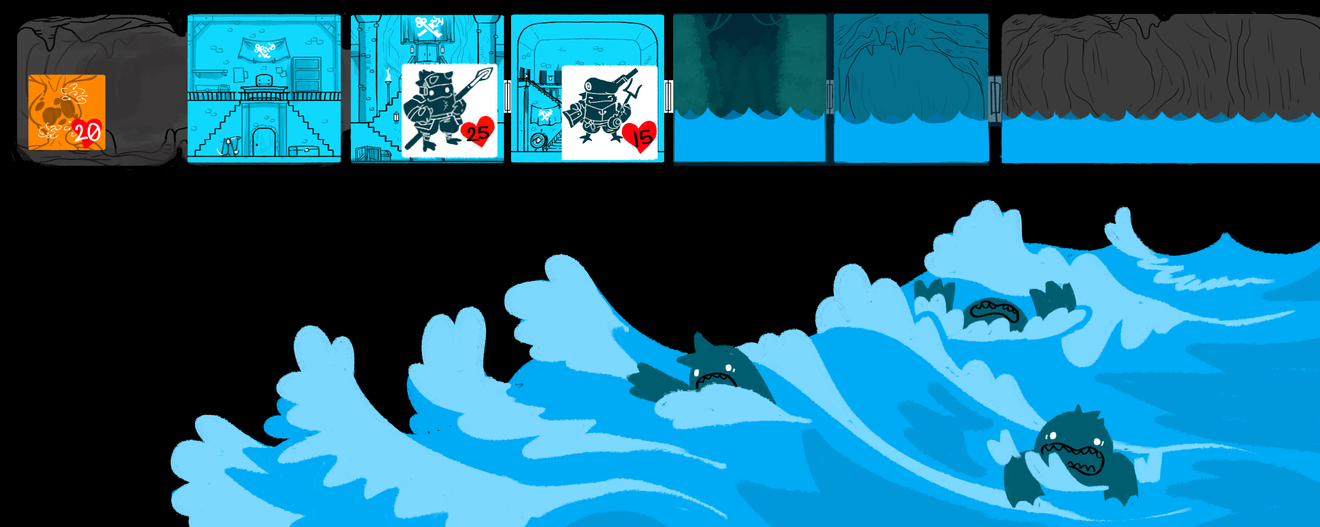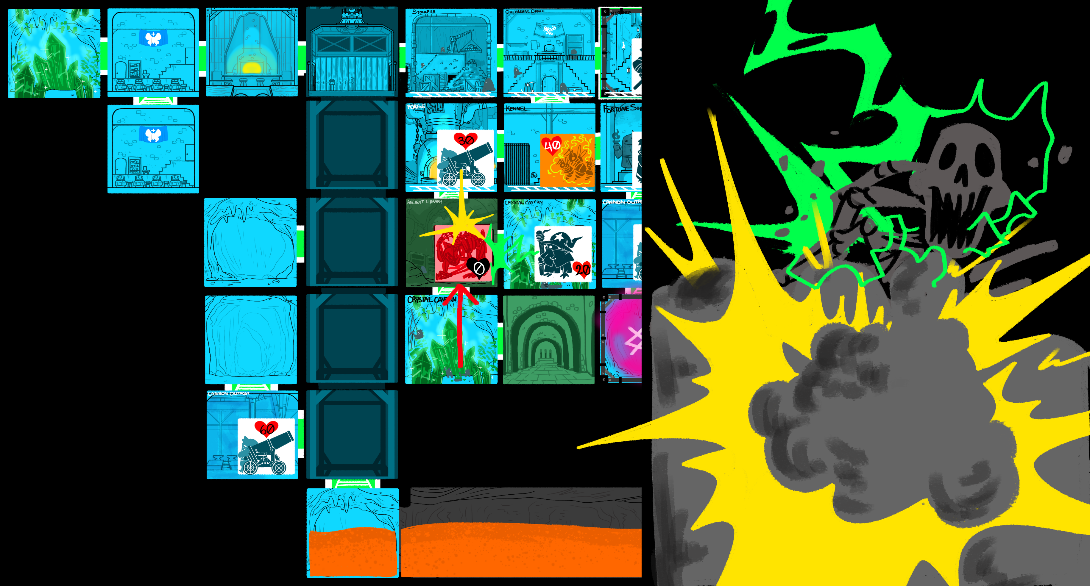 C5 (Cannons at Depth 5): Get into the elevator, immediately ride to Depth 2 to reach D2, Unleash everything (Projected Health: 105 -> 45)