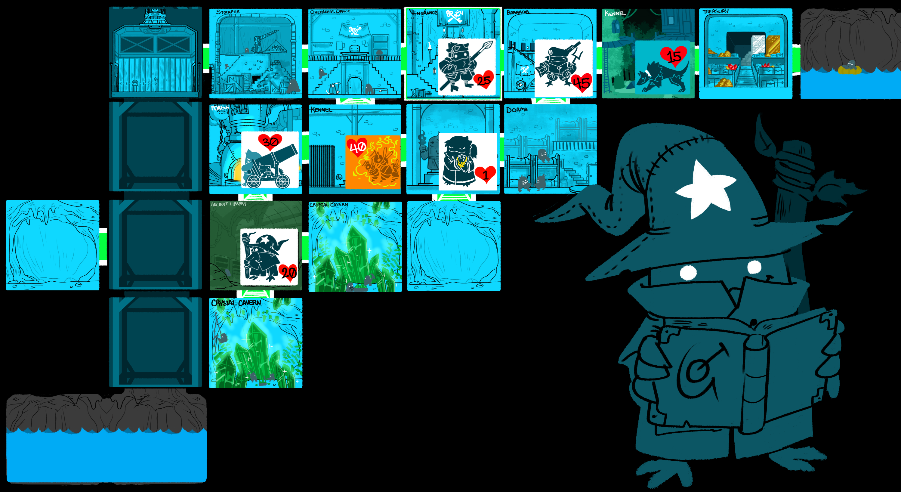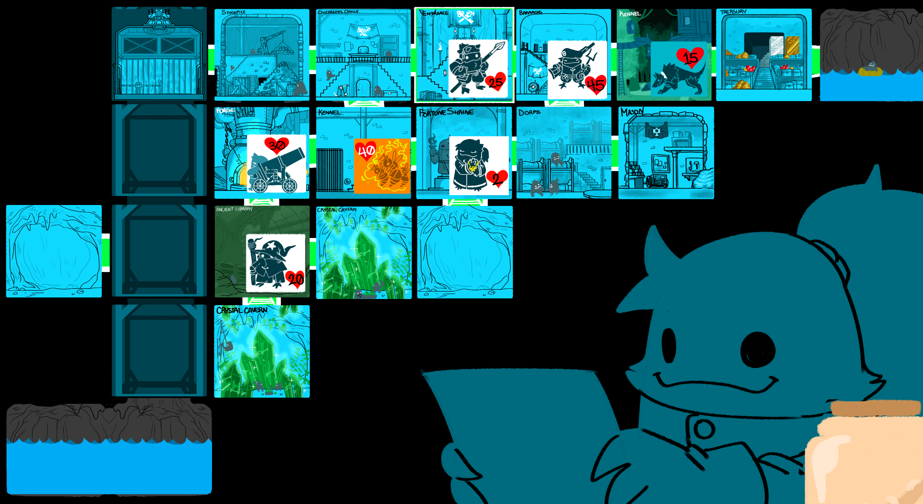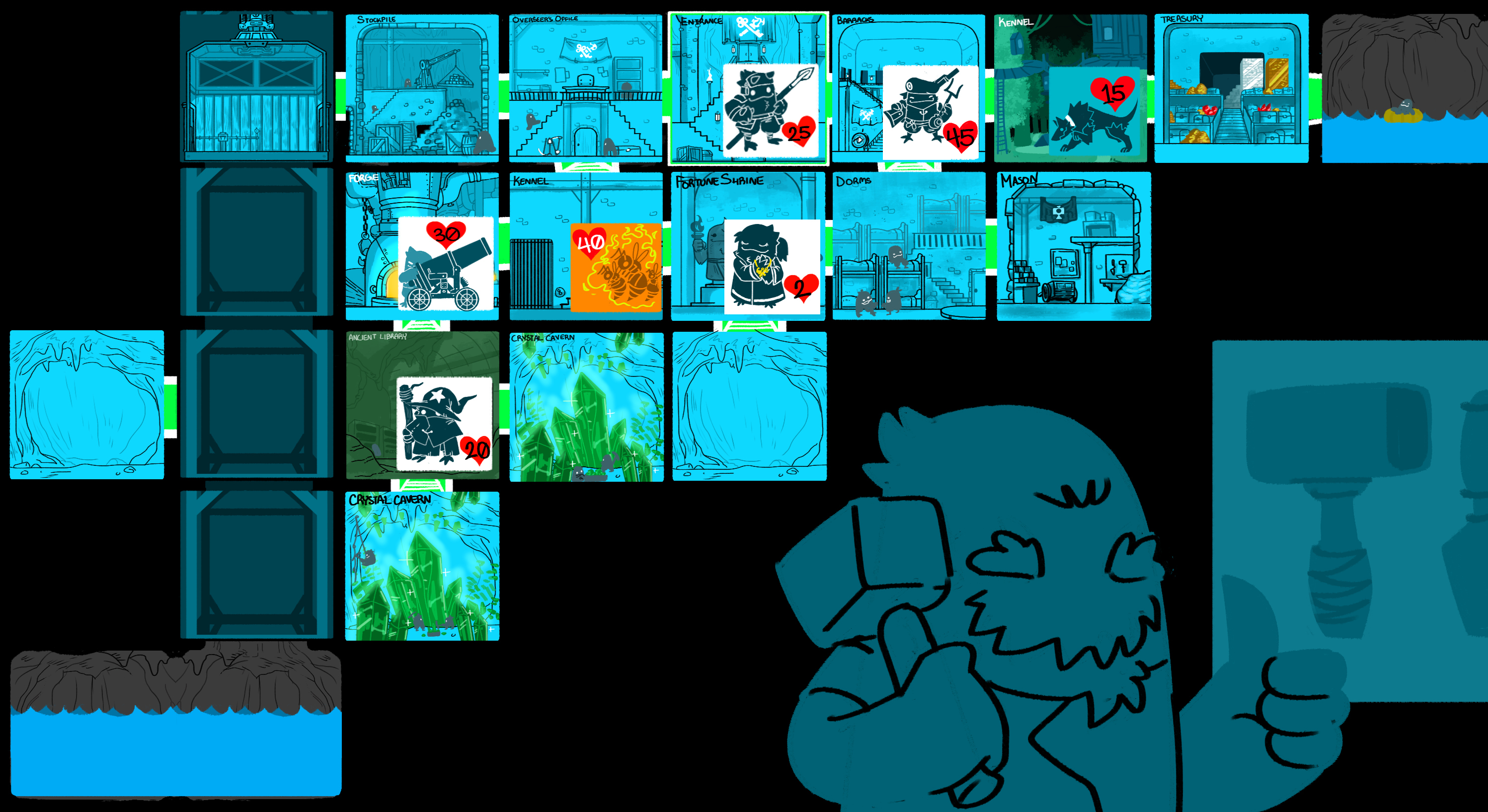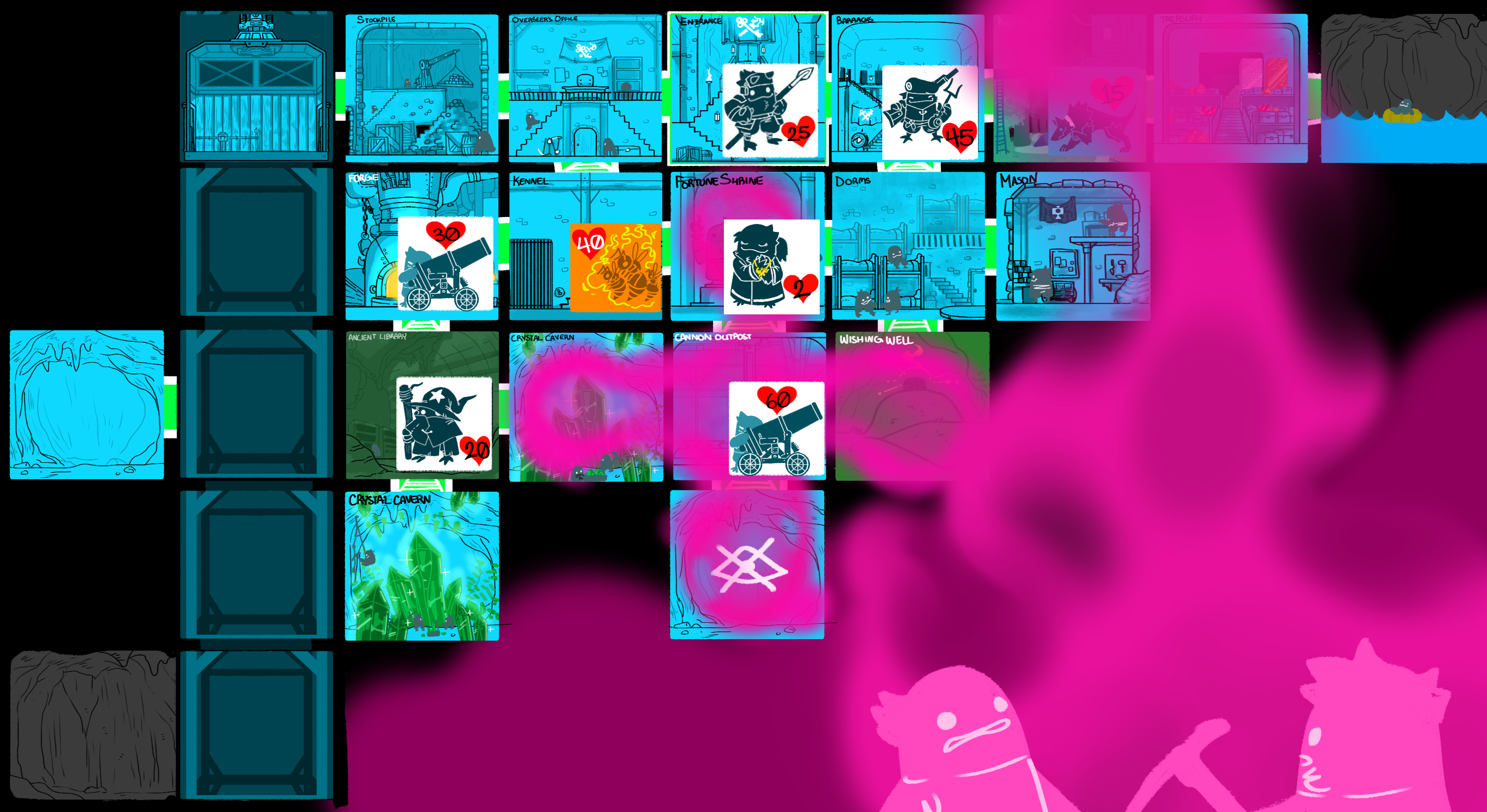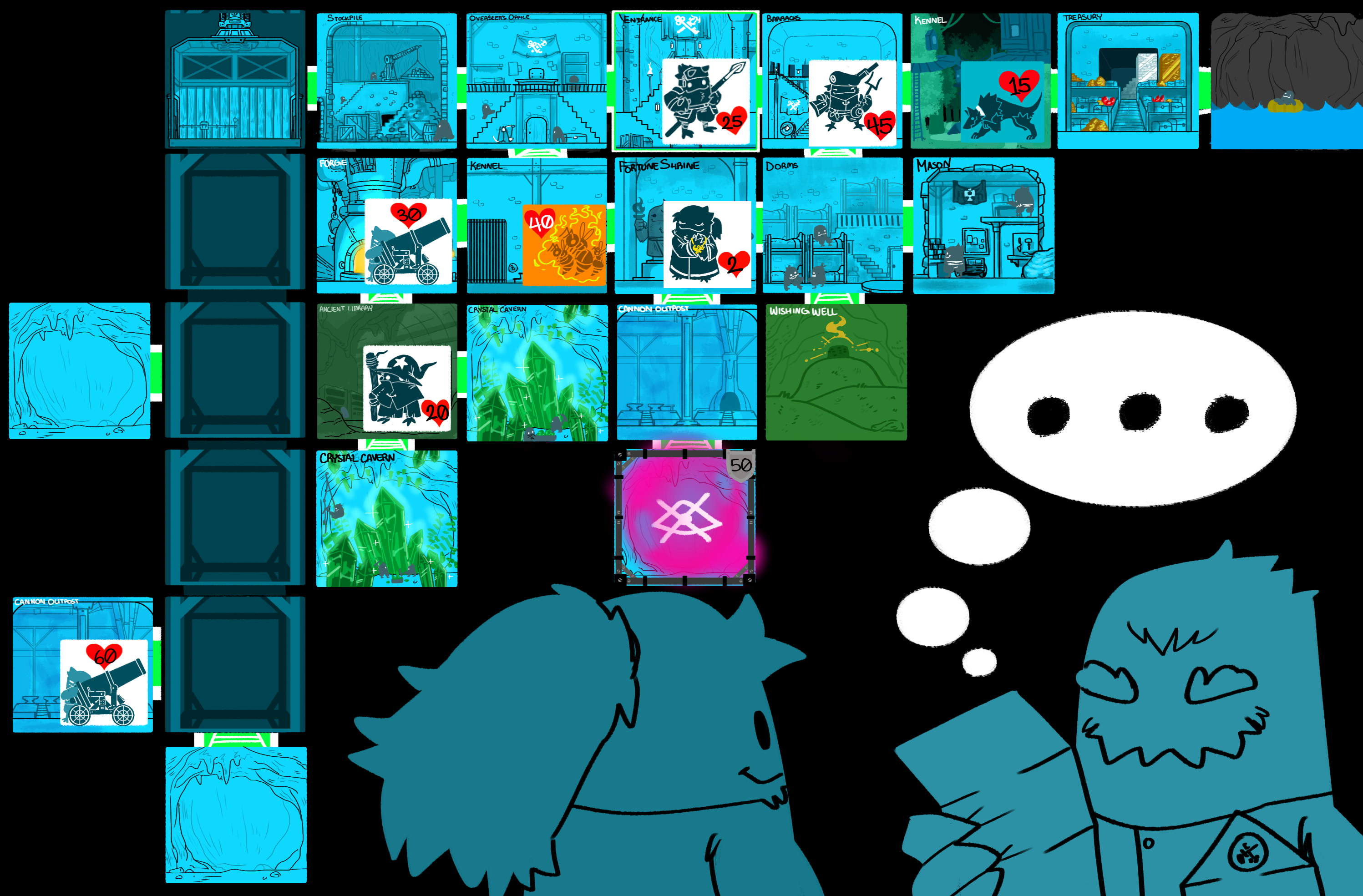 C5 (Cannons at Depth 5): Get into the elevator, immediately ride to Depth 2 to reach D2, Unleash everything (Projected Health: 105 -> 45)