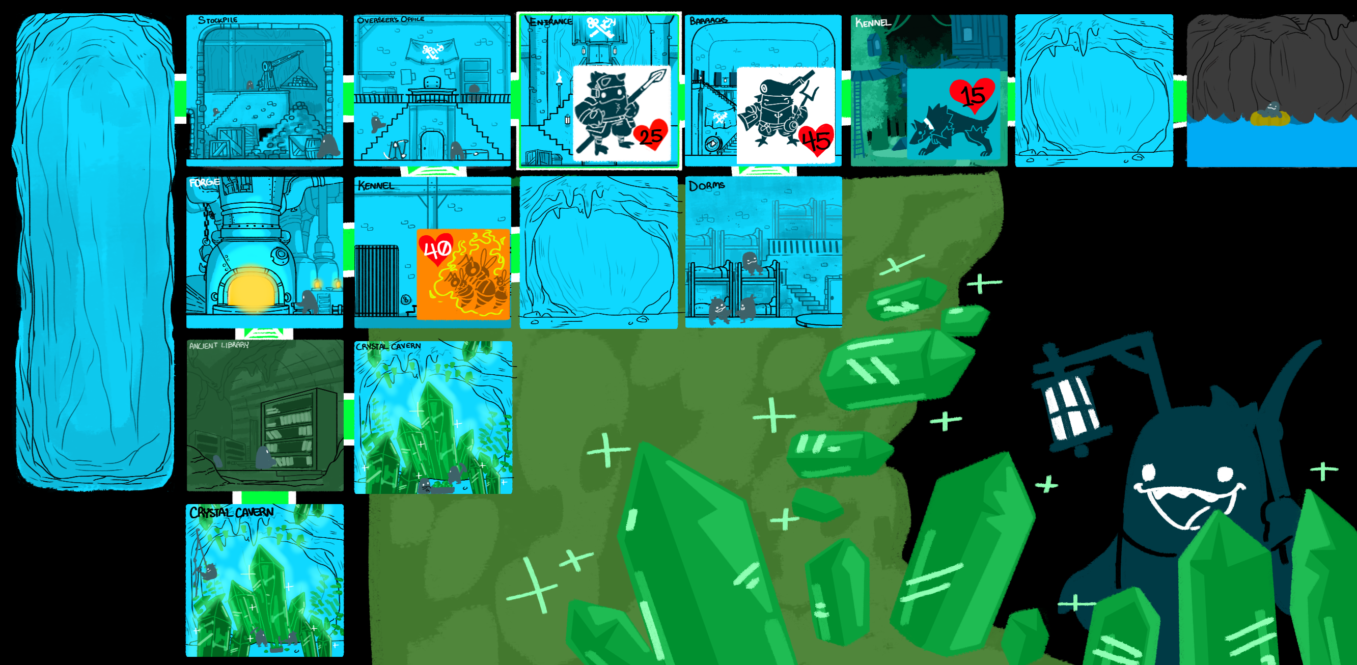 :Hezug: "Now I'm no general and very little warfare expertise, but I can tell you the basics. Units possess strength that's accounts for the power of their attacks and how much health they have. Fighting happens simultaneously and at the same time damage is dealt it is also taken. Units move grouped together in a troop and stack strength, so Soldiers have 5 Strength each and there are 5 stationed in the entrance for a troop with 25 strength. Units can only move 1 room per round unless otherwise stated."