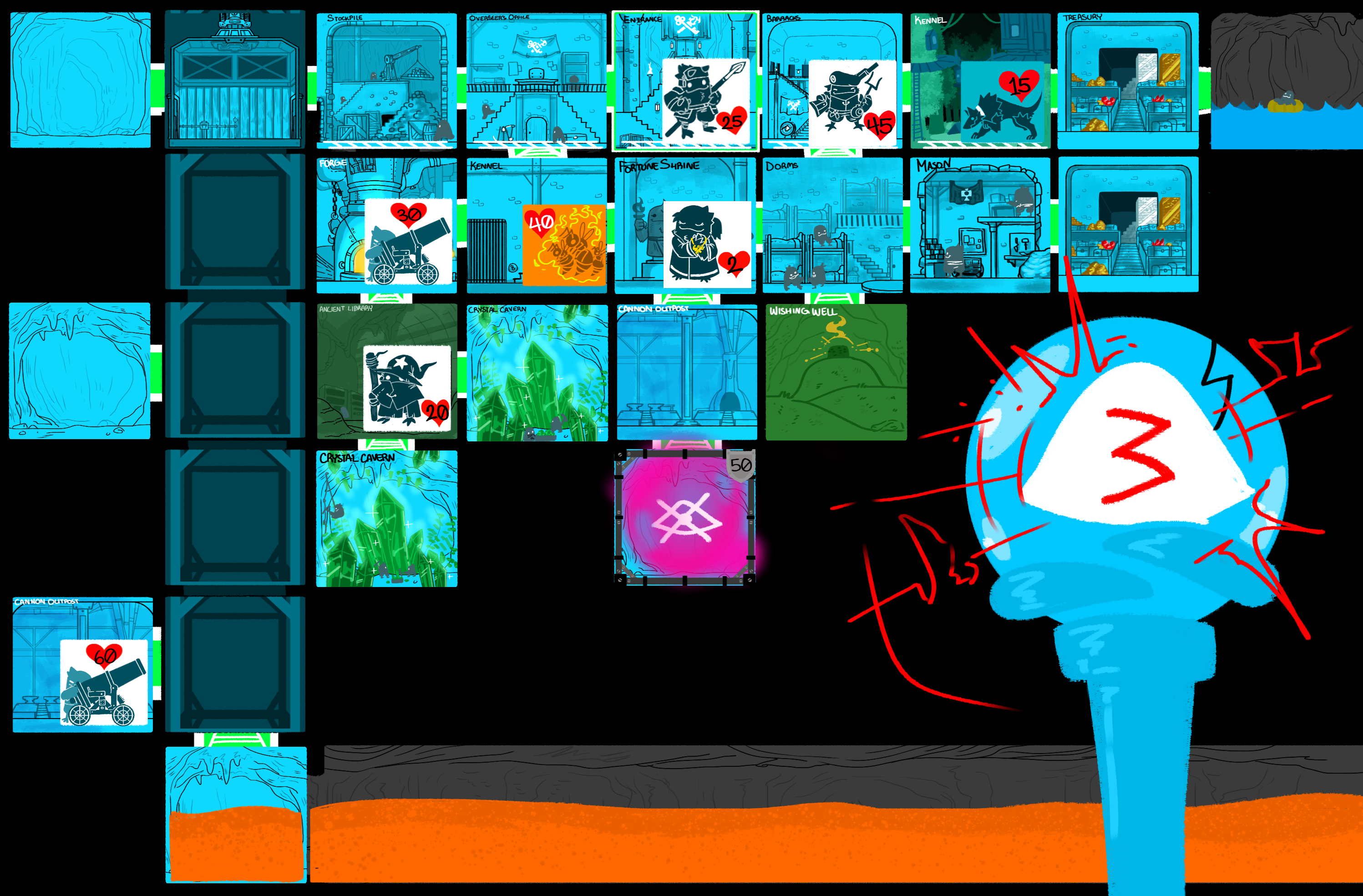 * Sorry, little doggos, but this hulking angry supermonster is worth far more in military strength than you. Even more importantly, Yorzzyll's deluge is a game-breaker that can easily neutralize the lava rooms. Once we've defeated Yorzzyll , replace the hounds. Alternatively, if Yorzzyll's deluge kills the hornets outright, have them replace those. Or, perhaps it will take a liking to the river.