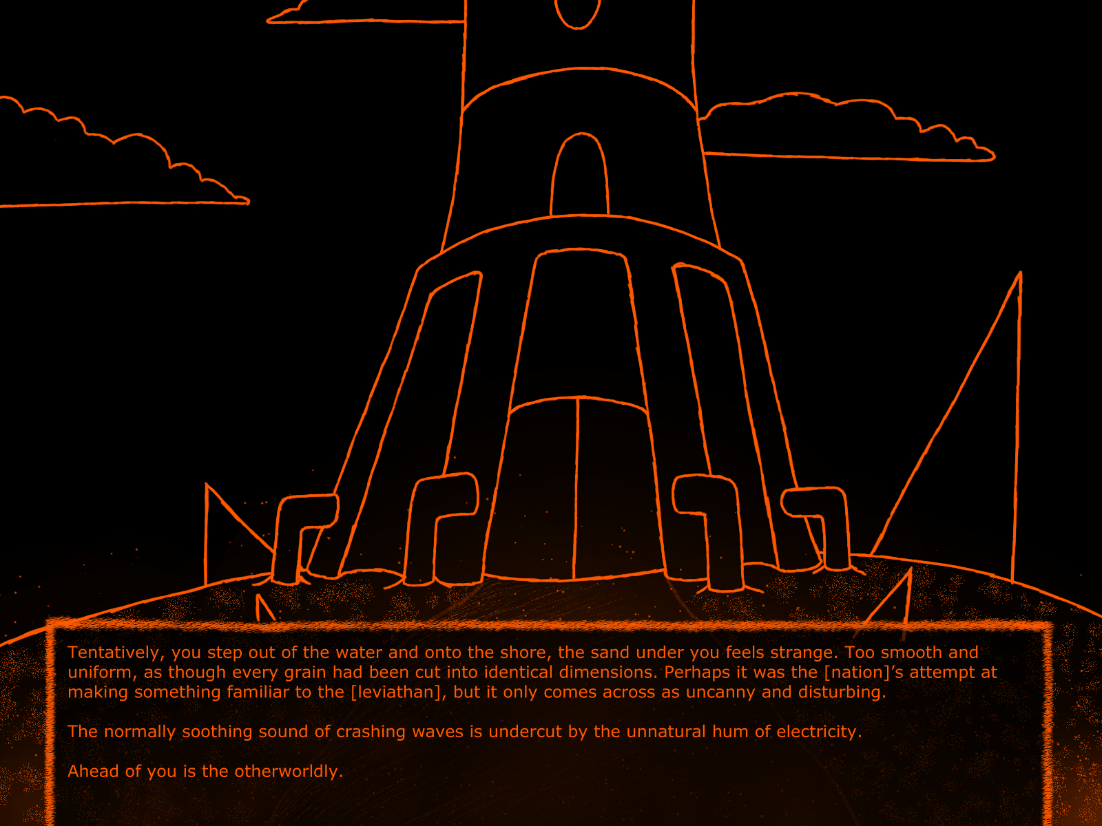 I don’t trust it, not for a moment. I can feel metal plating just beneath the sand. Everything here is a facade meant to bring me comfort. The other [leviathan] would notice the difference immediately, so why make the attempt in the first place?
