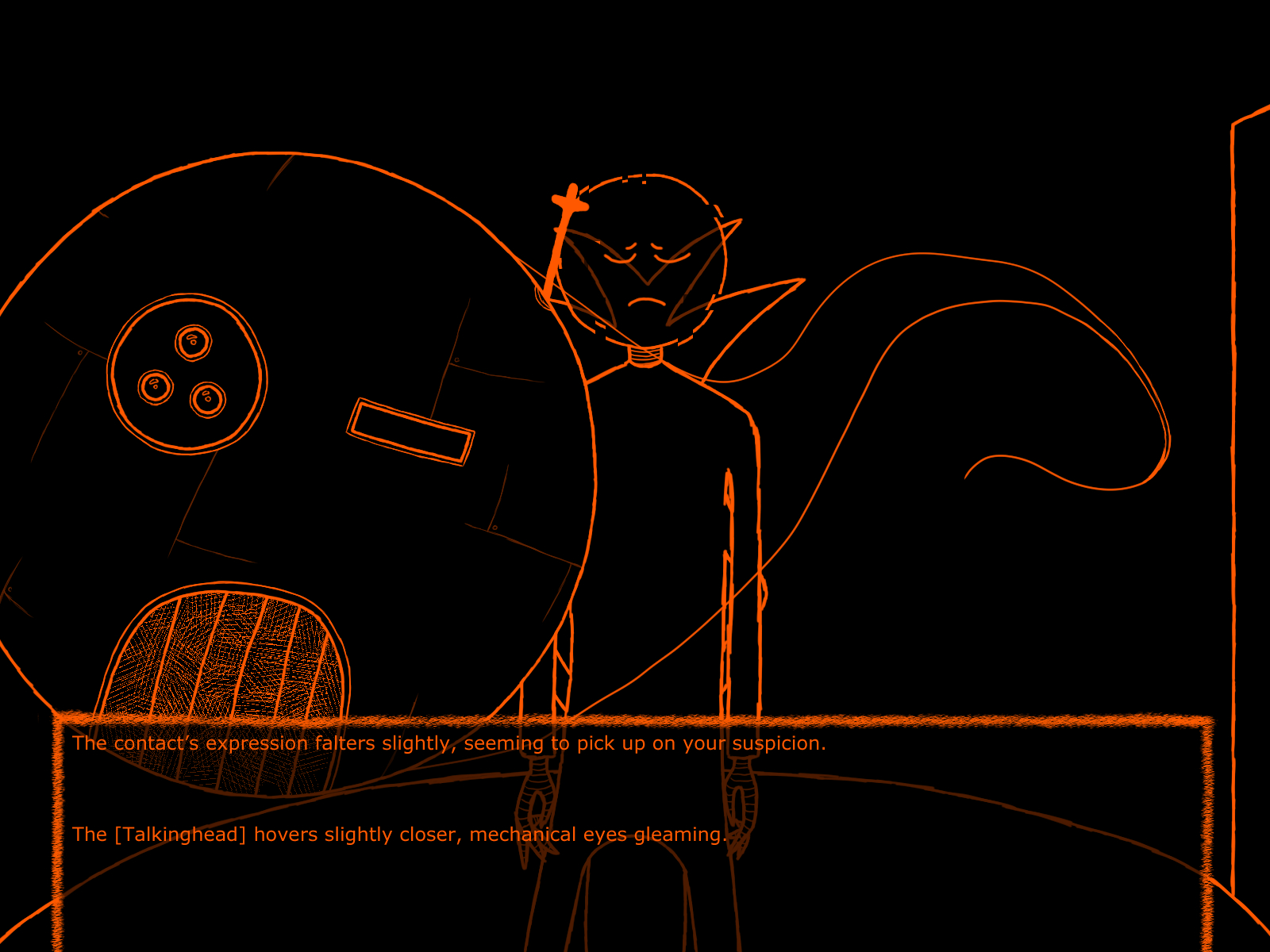 I just nod, making sure that I have a clear path to the door, just in case it tries to close on me. The contact seems to pick up on this, and take a half step back.