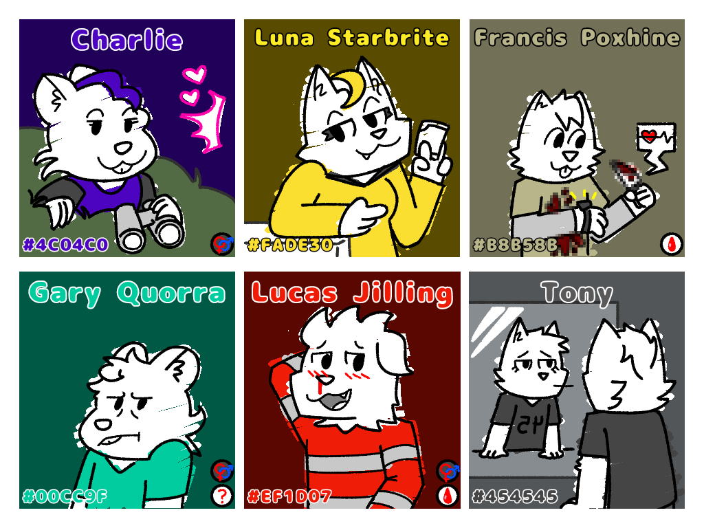 Updates bi-weekly; that is to say two times in one week. Potentially NSFW. Depictions of sex and gore are dependent on which character you select, except for Gary's story. Even I do not know what it entails.