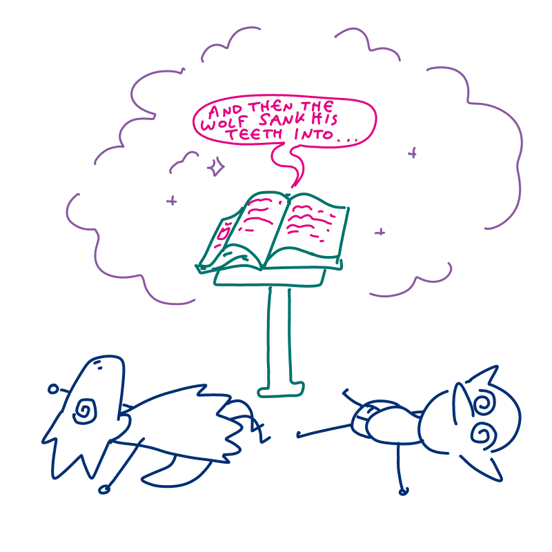 "For instance, you need to decide how exactly the book lets the reader experience the story. Does the book project a magical illusion around the reader? Does the book suck the reader into a pocket dimension that's modeled after the story? Does the book send the reader into an enchanted slumber where they dream of the story?
