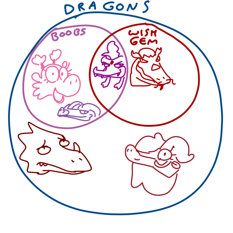 This is Ramgar the Fiery. She's self conscious about her flat chest and wishes she had big boobs like certain other dragons.