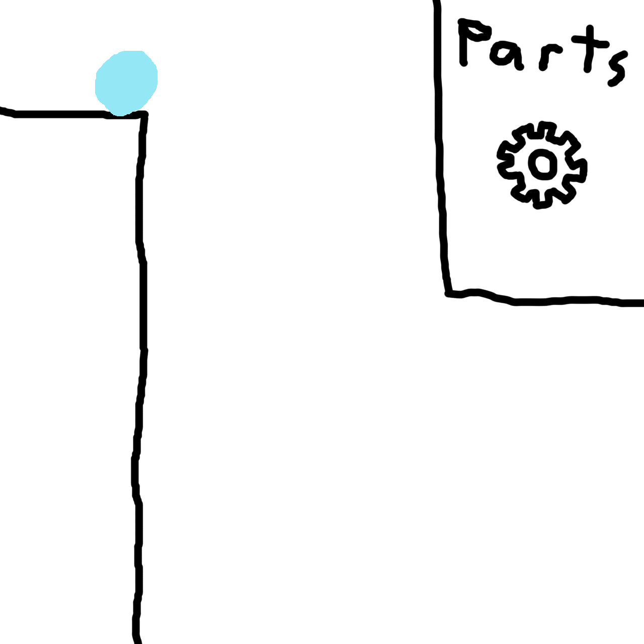 Let’s start you off with a simple one. There is a baby, represented by this marble, stuck on a cliff. You need to get it safely to the ground using only gears. As a reminder, you may use as many gears as you want, but only gears for this problem. Good luck, Employee #ERROR.